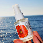 Indulge in the enchanting embrace of our Calendula Face + Body Mist, a floral serenade for your skin. This exquisite mist, crafted from lovingly distilled organic calendula flowers, whispers sweet nothings of hydration and nourishment, enveloping you in a warm, soothing aroma.