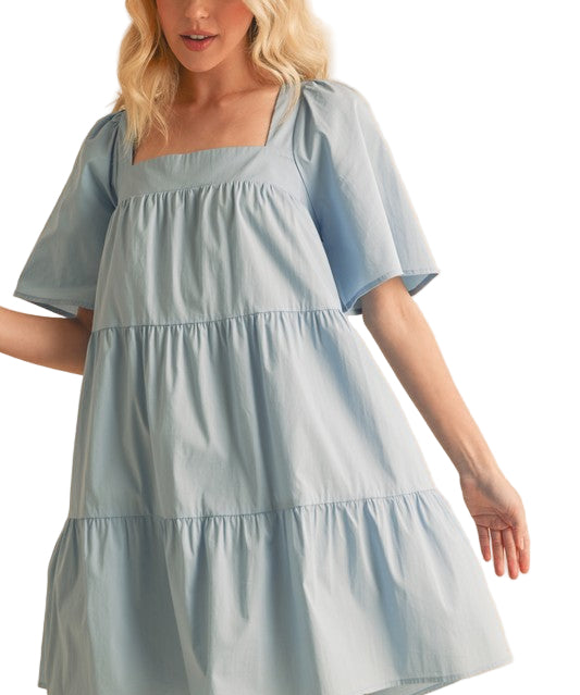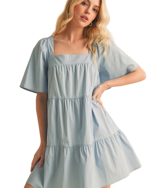 Aemi + Co Square Neck Half Sleeve Tiered Dress