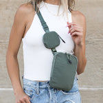Go hands-free with our Eva Clippable/ Removable Coin Pouch Crossbody! A fully removable coin/pod case keeps your tiny treasures within easy reach. Simply unclip to convert. Pockets galore in the main bag will keep you organized and on-trend! Perfectly sized to hold all your essentials and more, these will be your favorite go-everywhere bag! Grab your phone, keys, and essentials, and get out the door!