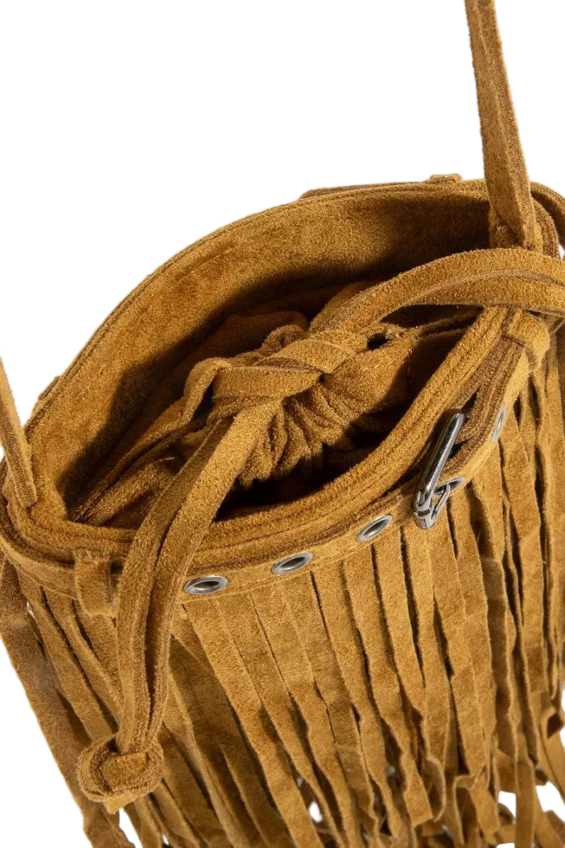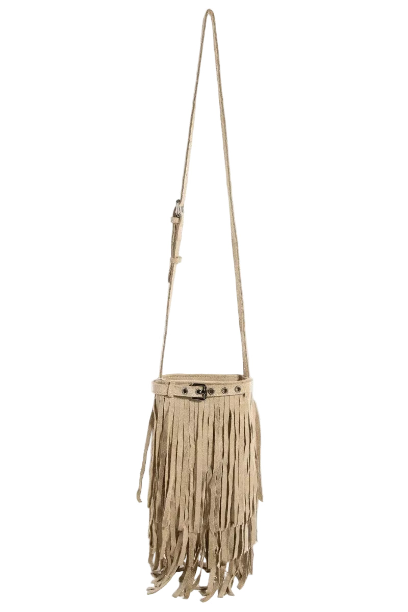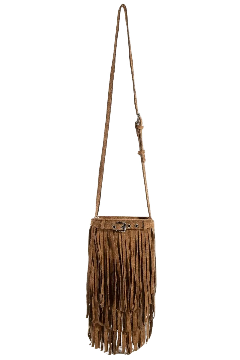 Whispering tales of romance and adventure, the Fame Long Fringe Bucket Shoulder Bag is your perfect companion. Its bohemian charm dances with every sway, the long fringe detailing creating a playful allure that captivates the heart.
