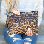 Go out in style this season with our versatile, oversized everyday clutch- now available in LEOPARD! These gorgeous clutches are the perfect way to keep your look streamlined while adding a touch of this trending style! An oversized fit will hold all your valuables! An inside zipper pocket and 2 small pockets keep your tiny treasures and phone in place and quickly within reach! You will want to take these everywhere.
