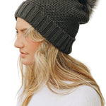 Pom Beanie with Faux Sherpa Lining
