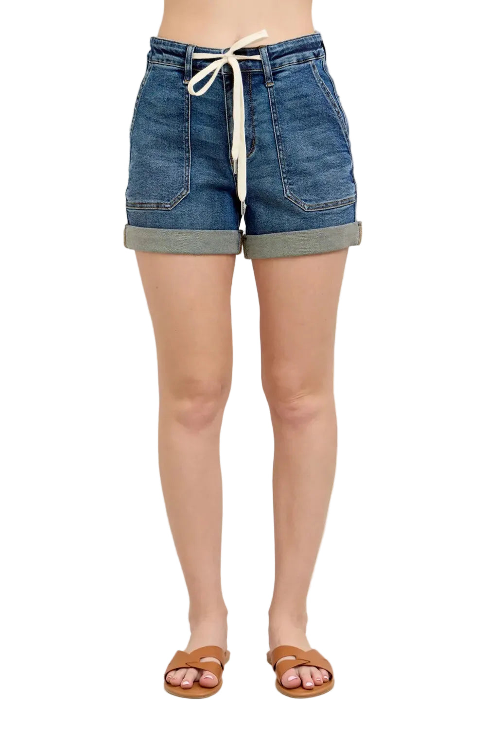 Embrace the essence of summer romance with the Judy Blue Full Size High Rise Cuff Denim Shorts. These enchanting shorts, designed for the curvaceous goddess, sit gracefully at your natural waist, offering a silhouette that flatters and delights.