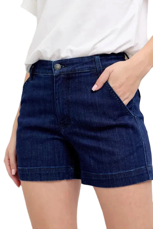 Whisper sweet nothings to your wardrobe with the Judy Blue Full Size High Waist Denim Shorts. These enchanting shorts embrace your curves, offering a flattering high-rise silhouette that dances gracefully with every step you take.