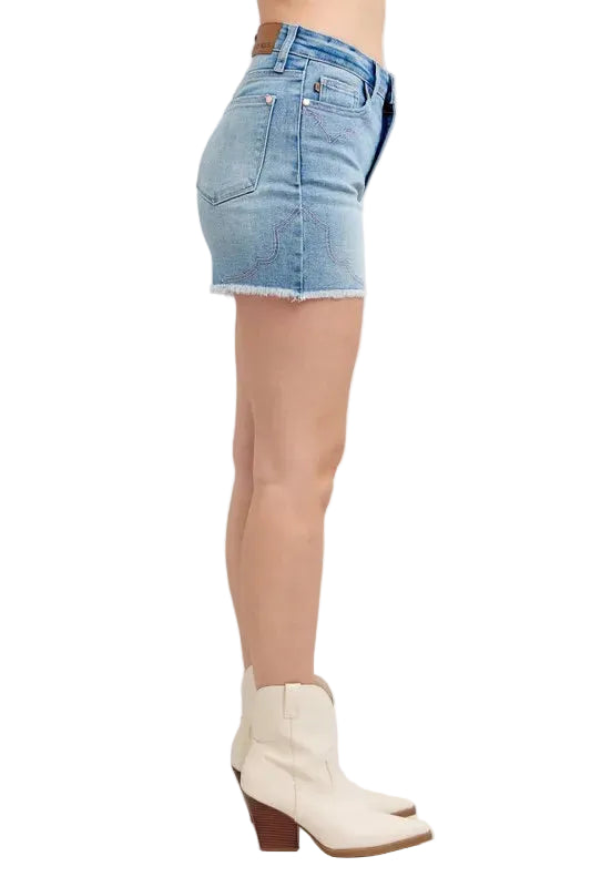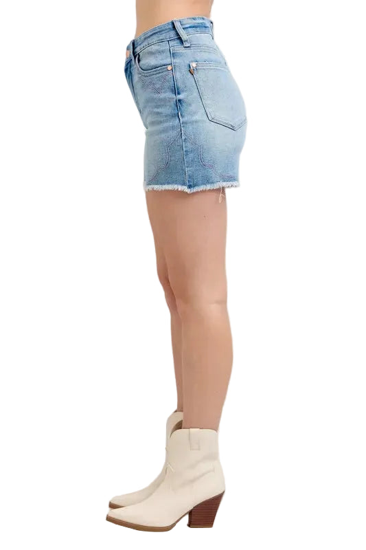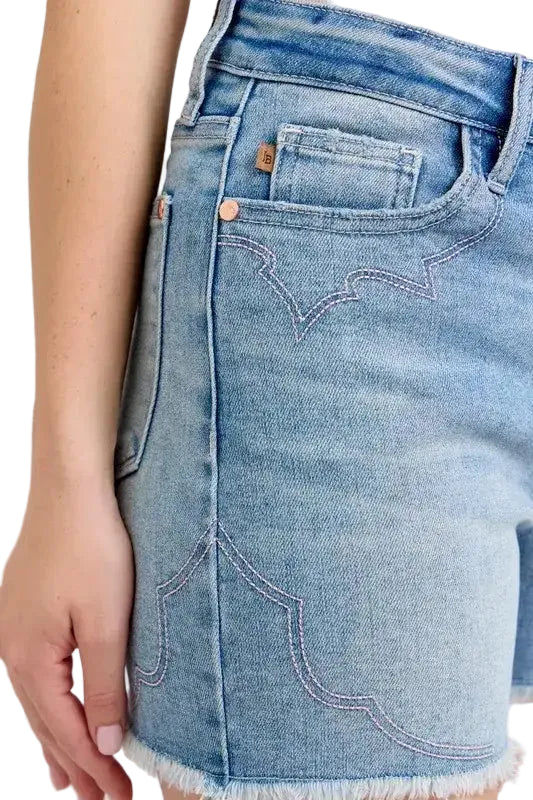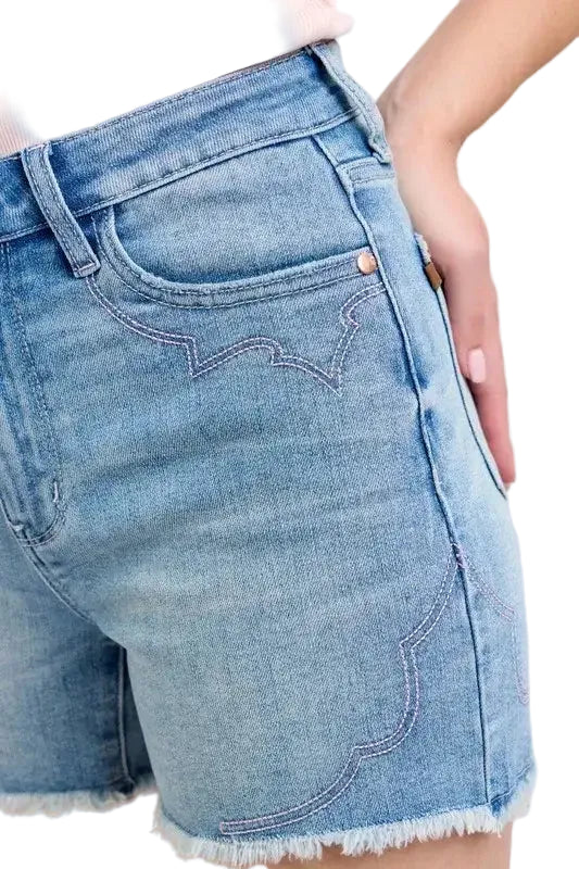 Embrace the warmth of summer with the enchanting Judy Blue Full Size High Waist Western Embroidery Detail Cut Off Denim Shorts. These shorts are not just a piece of clothing; they are a love letter to effortless style, designed to flatter your curves and celebrate your individuality.