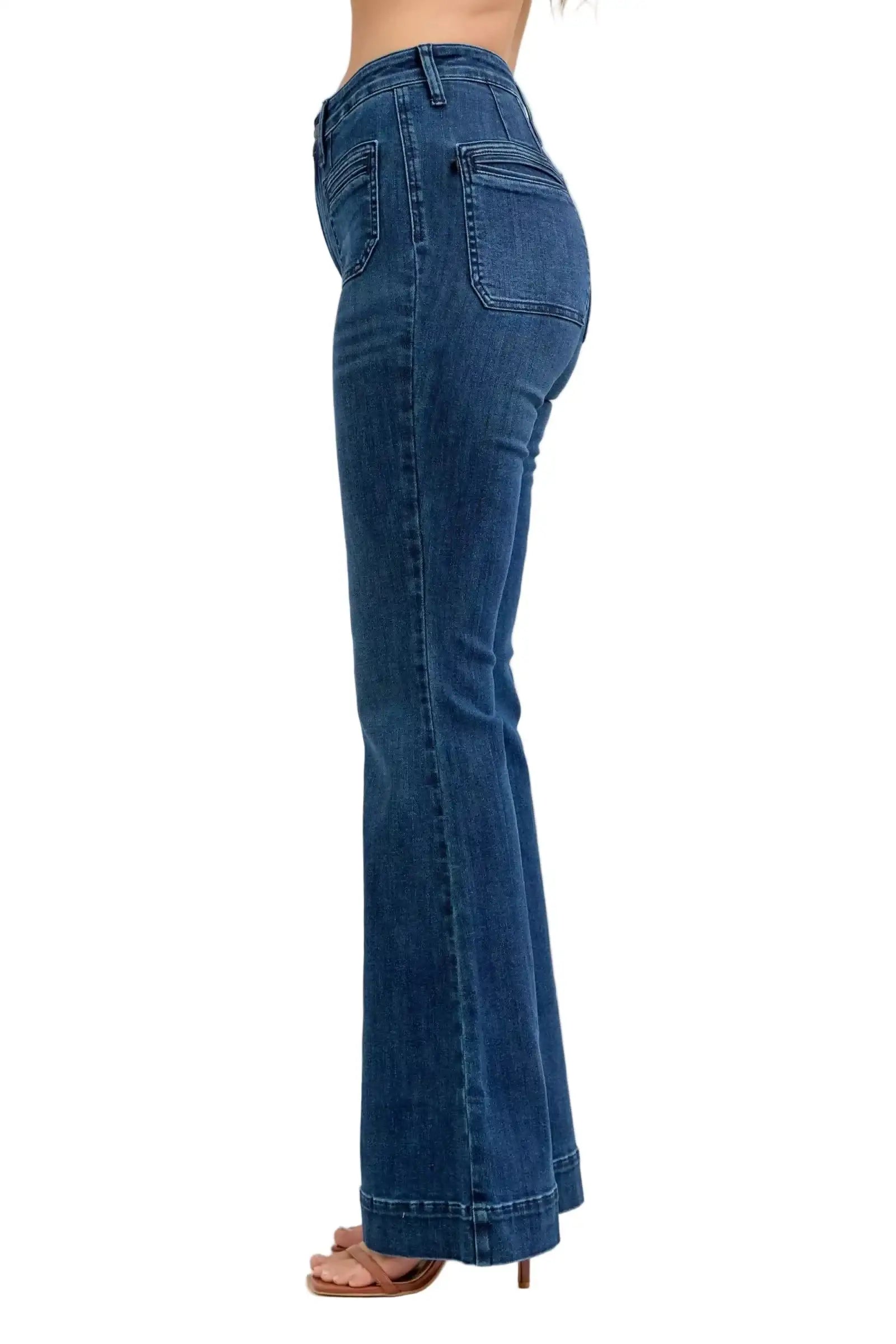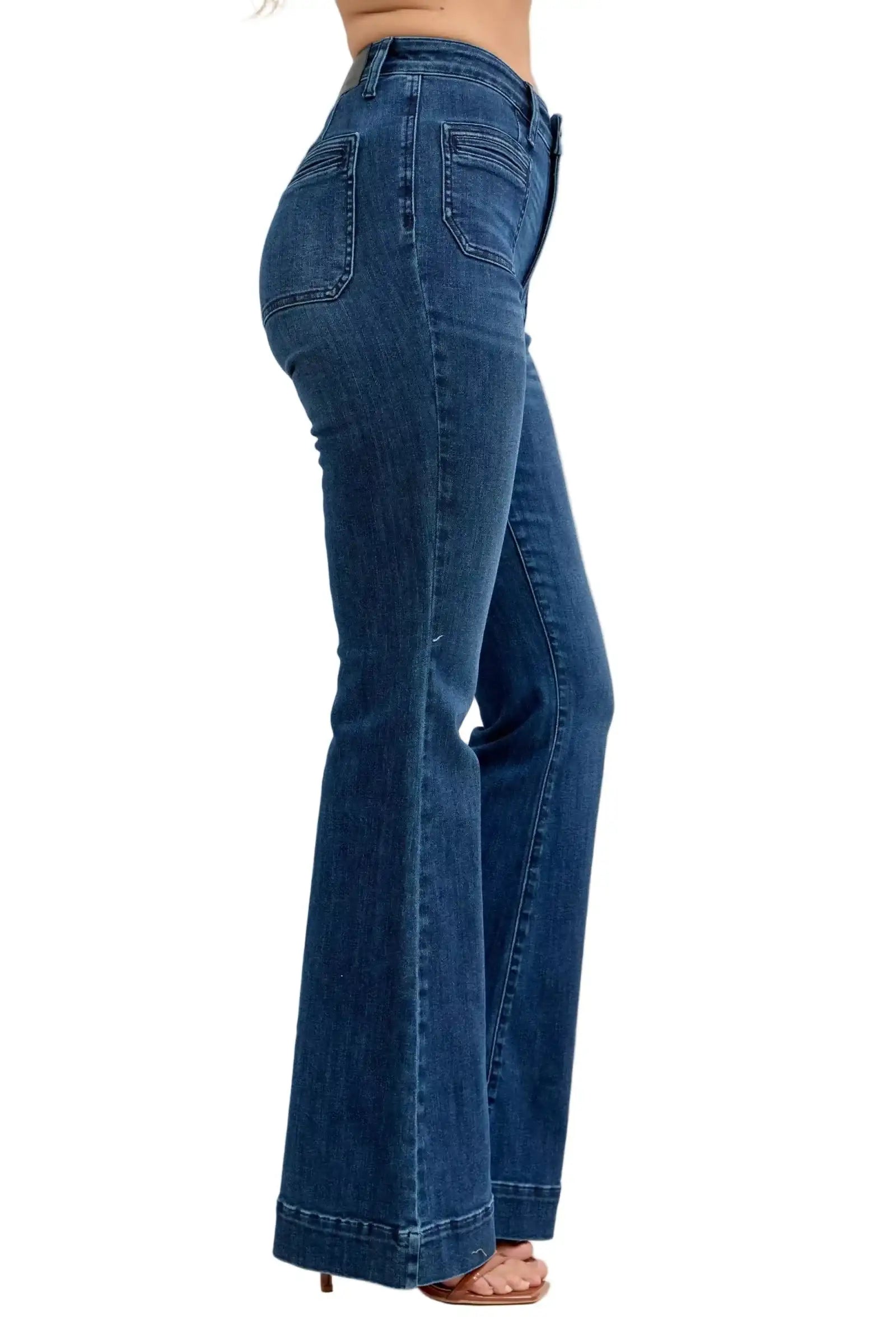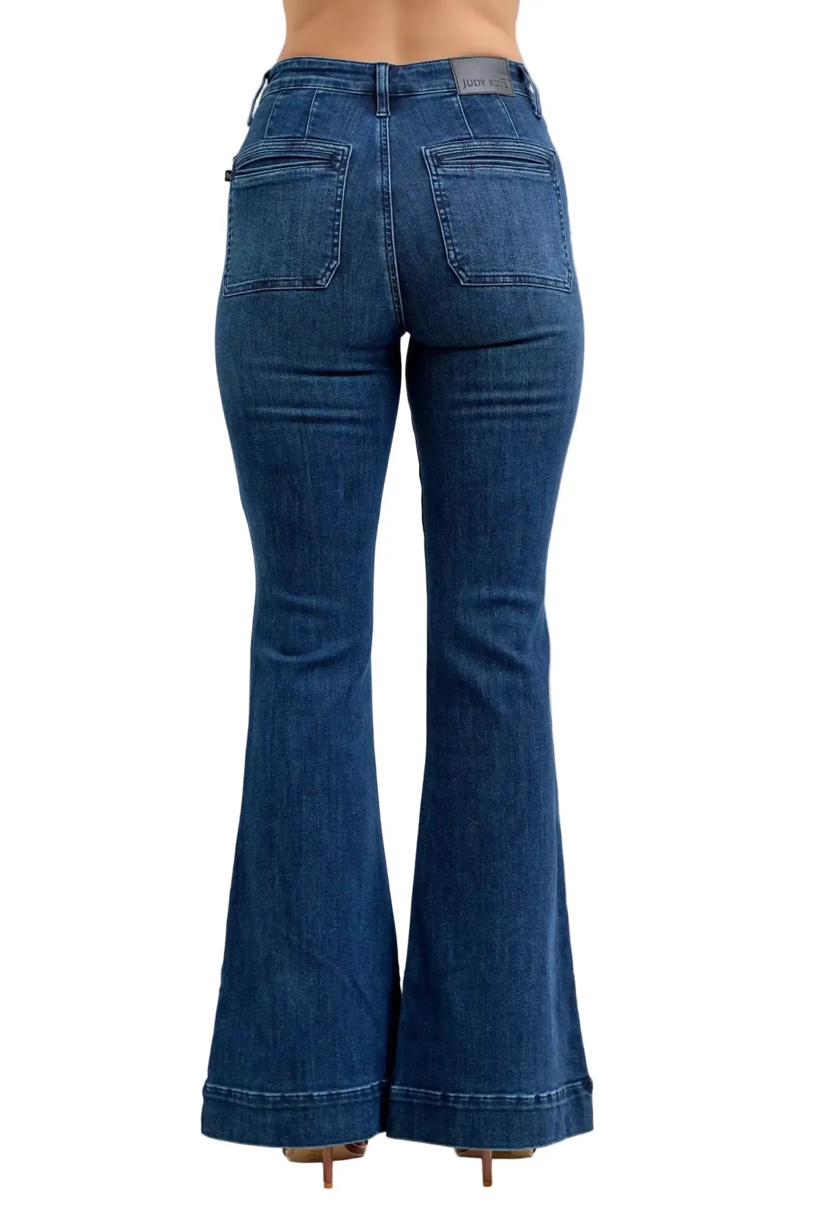 Embrace the allure of timeless elegance with the Judy Blue High-Waisted Flare Jeans. These enchanting jeans caress your curves, creating a silhouette that whispers romance and sophistication. The high-waisted design gently hugs your waist, while the flared legs dance gracefully with every step you take.