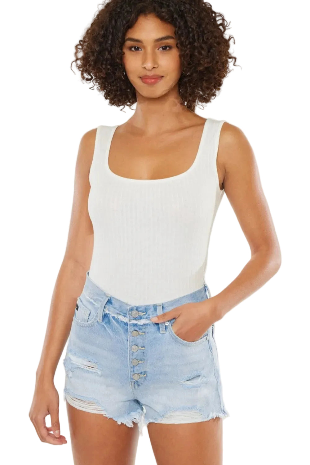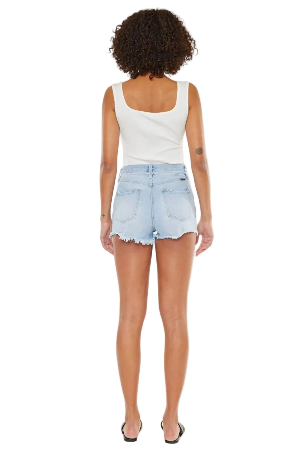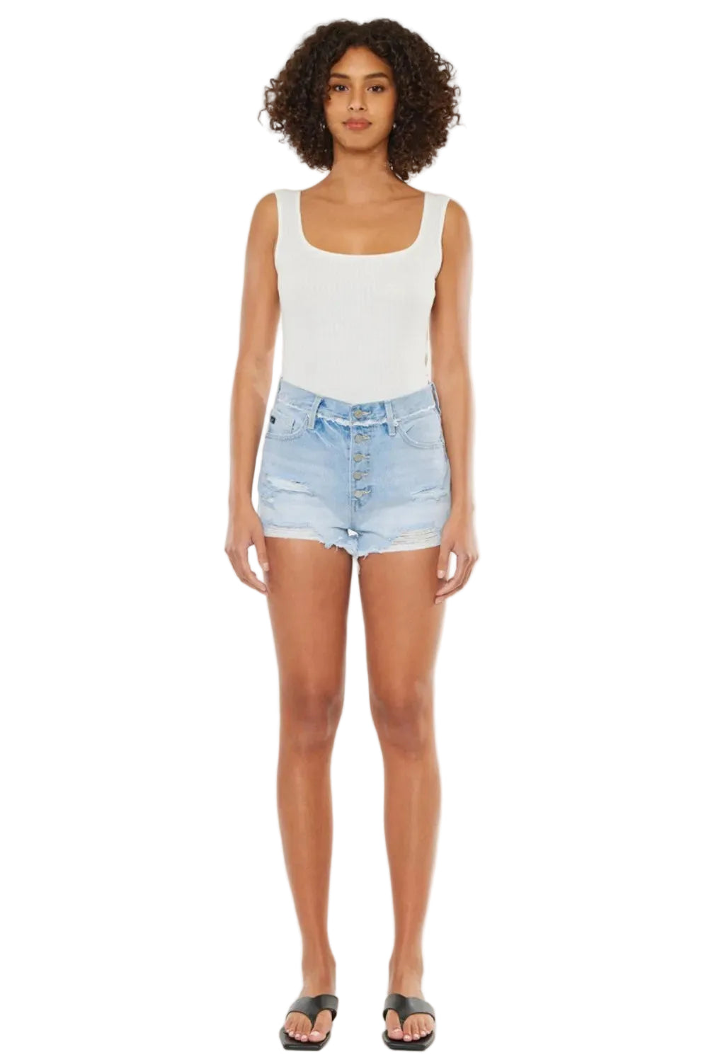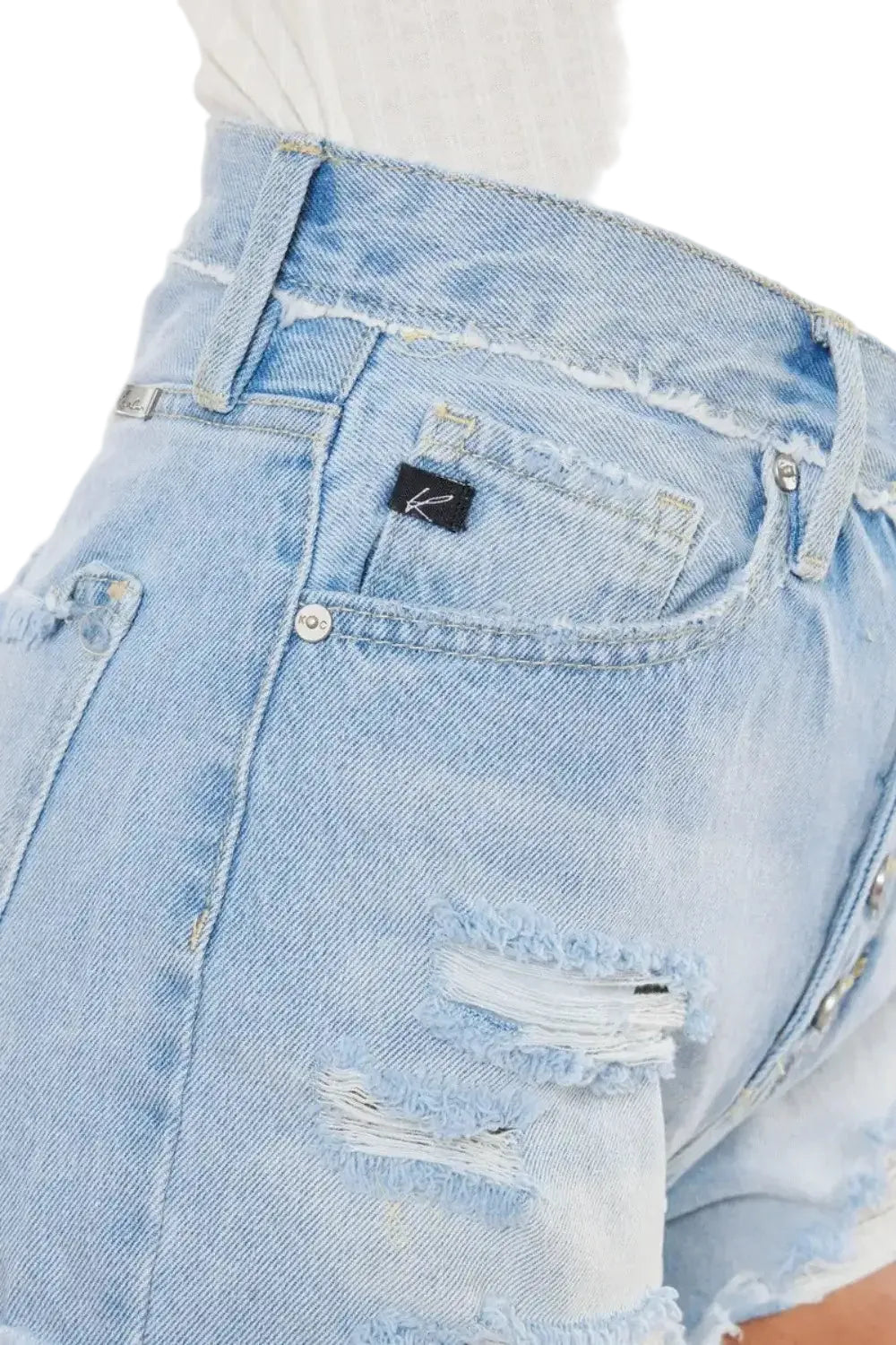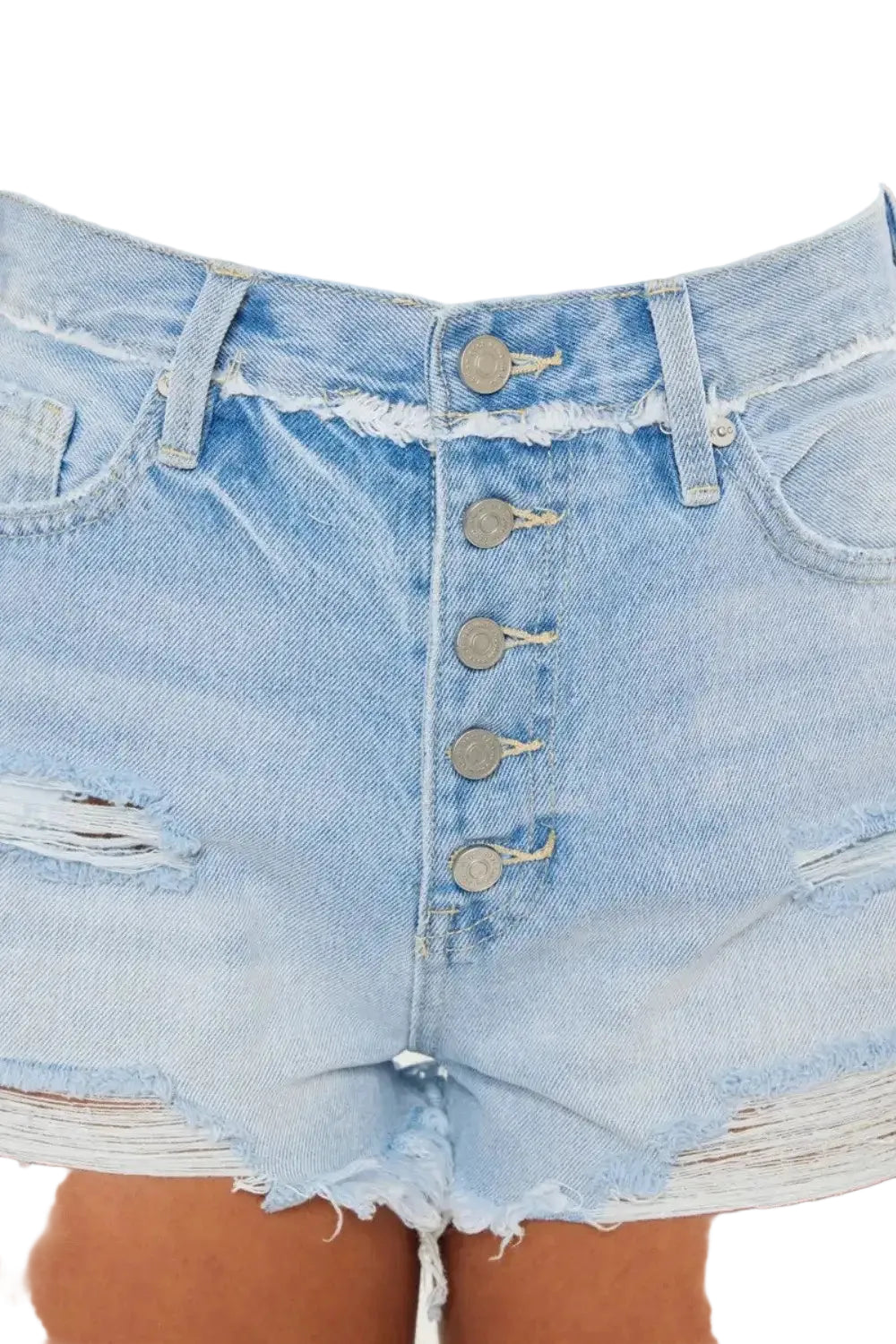 Embrace the essence of summer romance with the Kancan Distressed Button Fly Denim Shorts. Each pair tells a story of carefree days and sun-kissed adventures, adorned with charming distressed details that whisper of spontaneity and fun.
