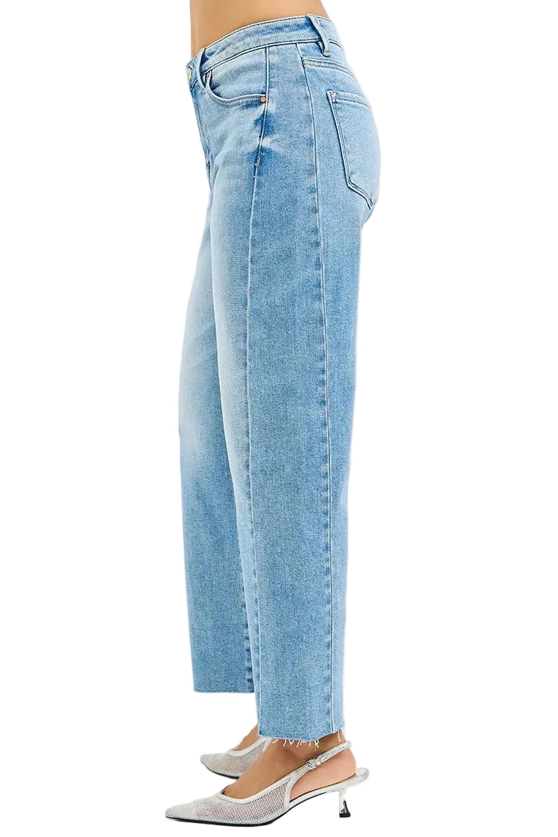 Embrace the allure of effortless style with the RISEN Full Size Slouchy Cropped Barrel Jeans. These enchanting jeans, with their unique curved side seam, whisper romance and individuality, inviting you to express your true self.
