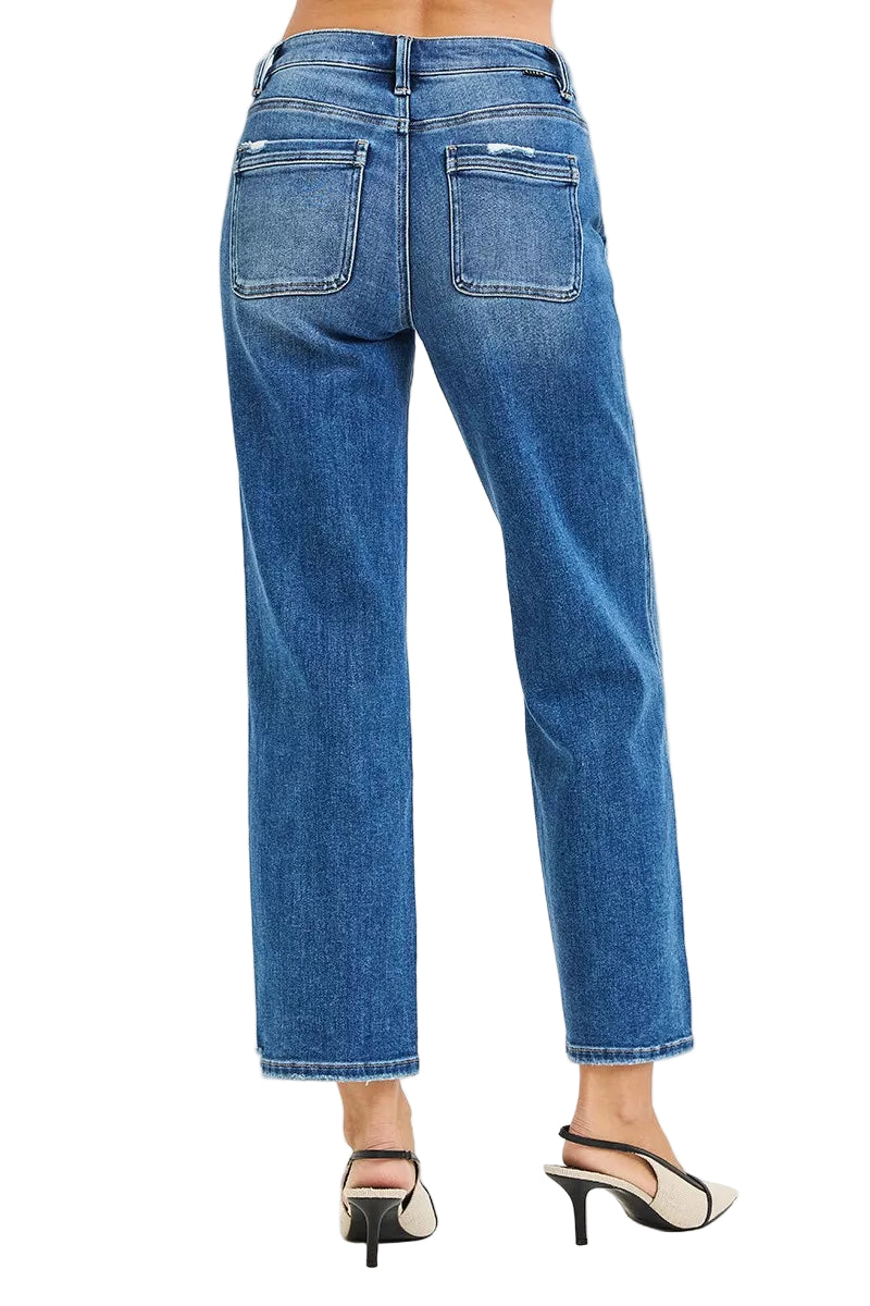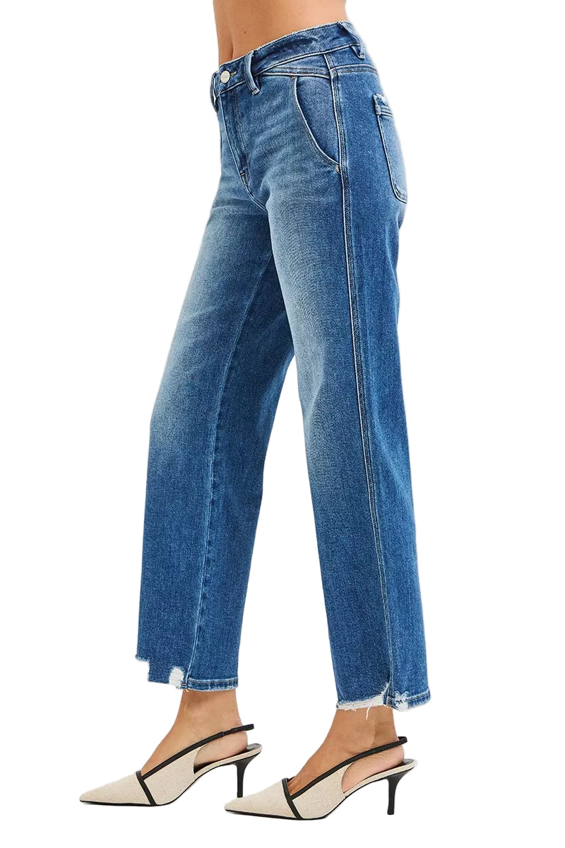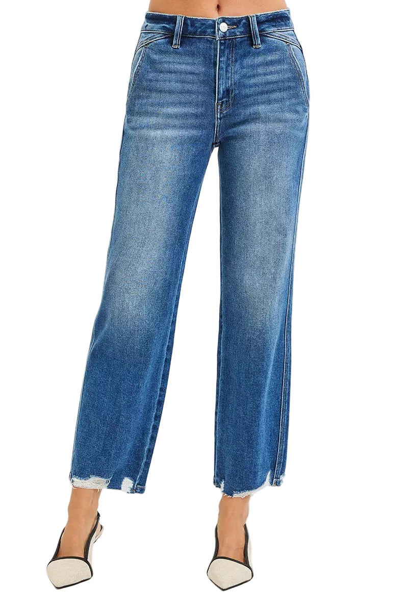 Embrace the allure of romance with the RISEN High Rise Ankle Straight Distressed Hem Detail Jeans. These enchanting jeans caress your curves, offering a flattering silhouette that whispers elegance and confidence. The high-rise fit gently hugs your waist, while the ankle length adds a modern twist to a timeless classic.