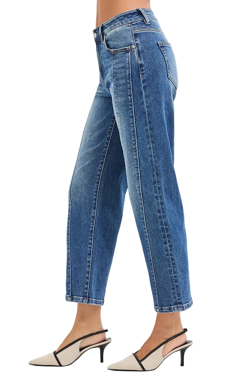 Embrace the allure of timeless elegance with the RISEN High Rise Crop Straight Jeans. These jeans caress your silhouette, offering a flattering high-rise fit that accentuates your curves while providing unparalleled comfort. The cropped length dances playfully above your ankles, adding a modern twist to a classic design.