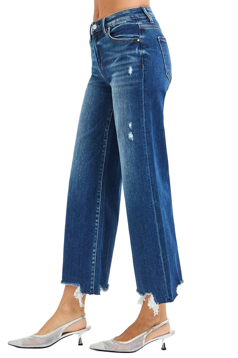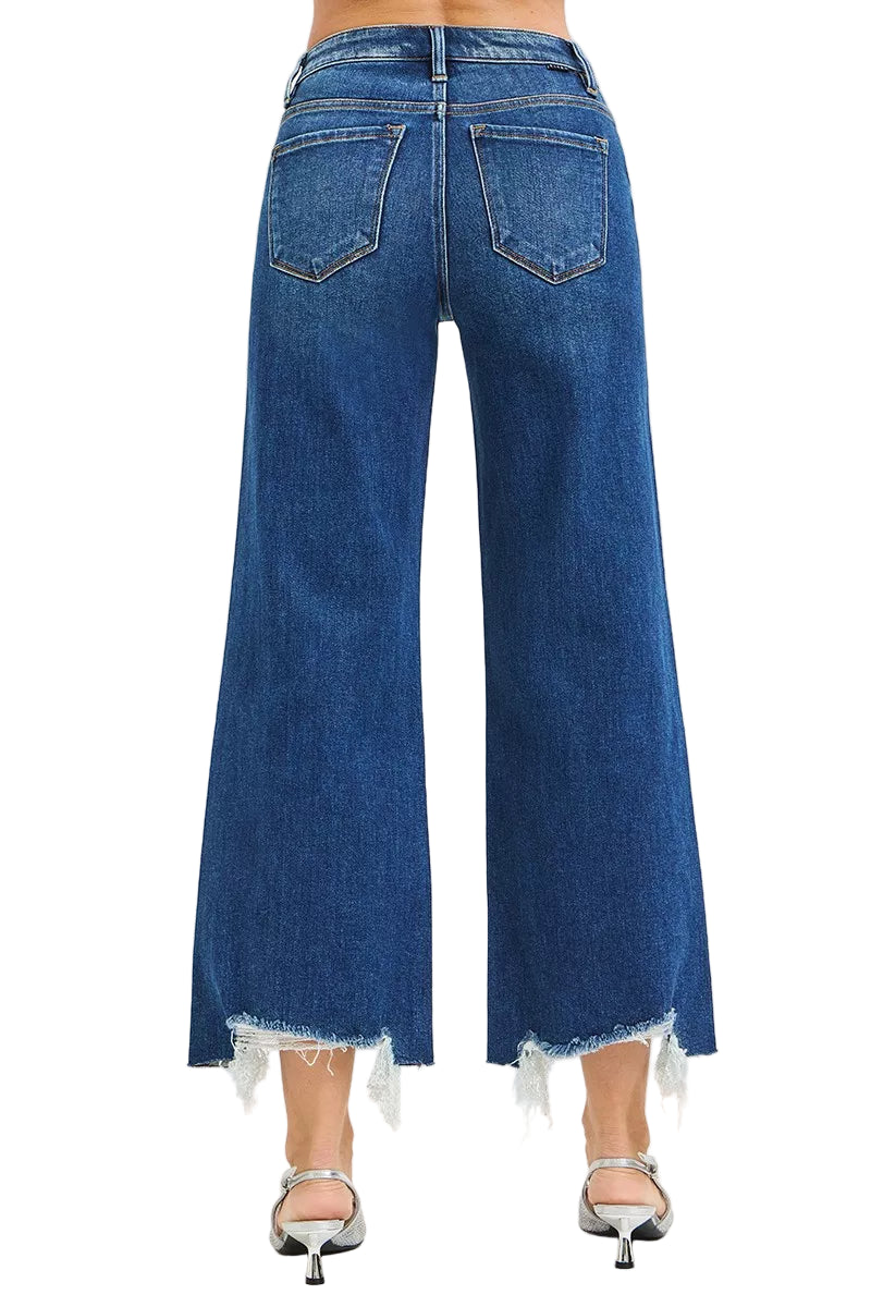Embrace the allure of effortless elegance with the RISEN High Rise Crop Wide Leg Jeans. These jeans caress your curves, offering a silhouette that whispers romance and sophistication. The high rise design gently accentuates your waist, while the wide leg style flows gracefully, inviting admiration.