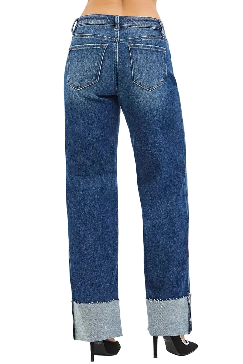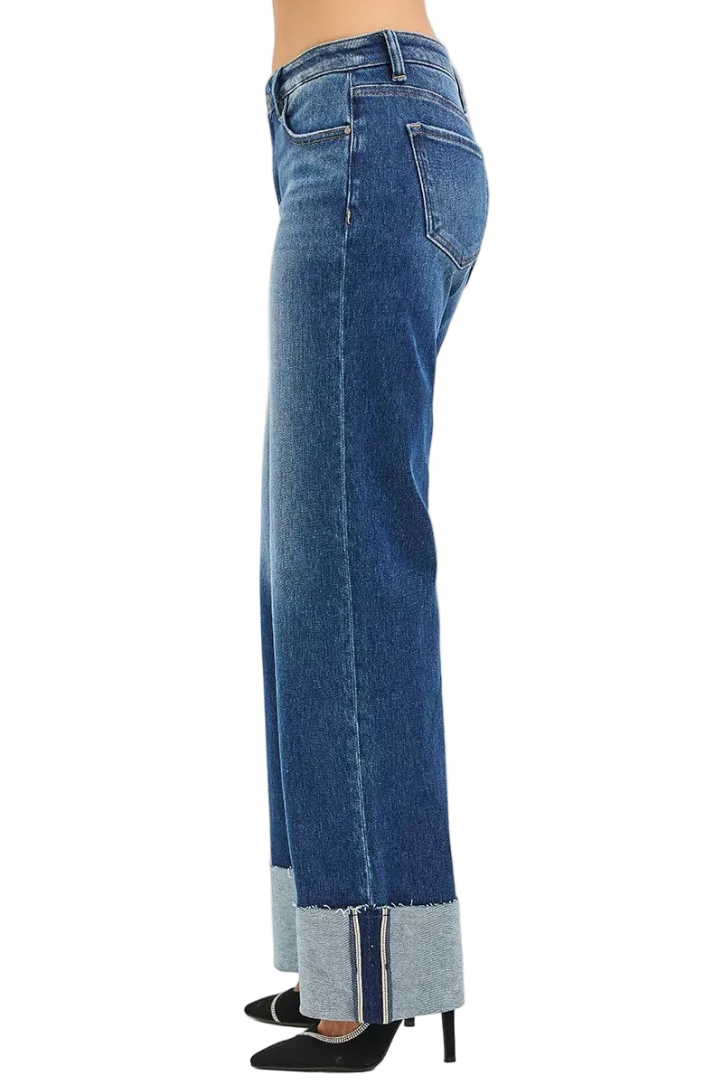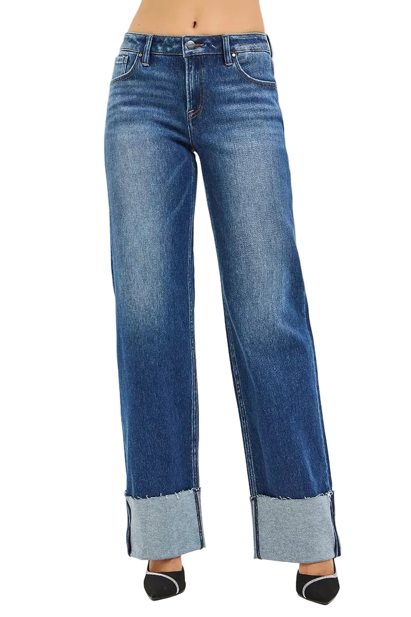 Embrace the allure of effortless elegance with the RISEN Mid Rise Wide Straight Jeans with Wide Cuff. These jeans caress your silhouette, offering a mid-rise waist that flatters your form while the wide straight leg envelops you in comfort.