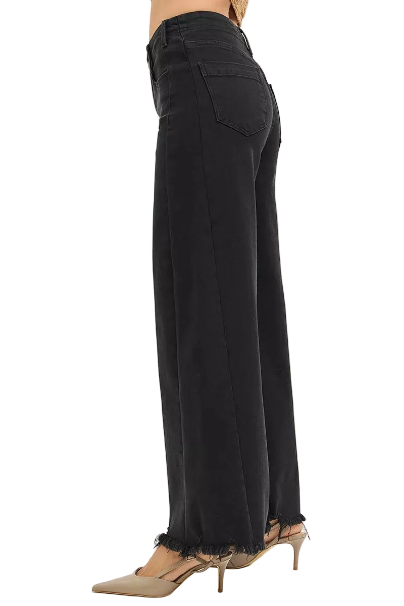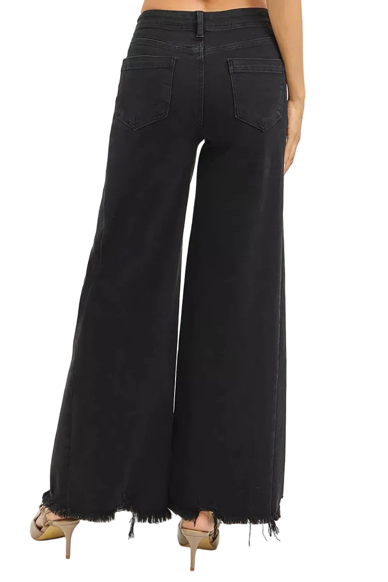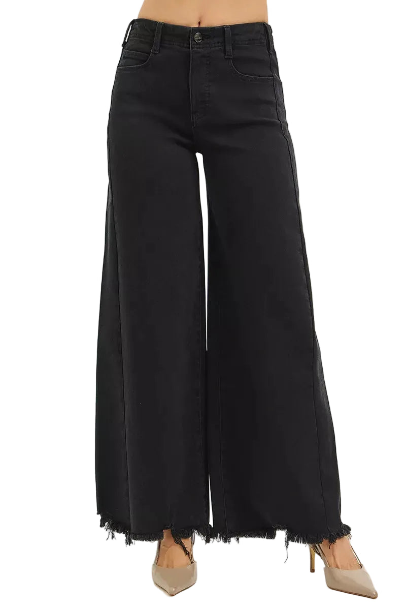 Embrace the allure of effortless elegance with the RISEN Tummy Control High Rise Palazzo Leg Frayed Hem Jeans. These enchanting jeans caress your curves, offering a flattering silhouette that whispers romance with every step.