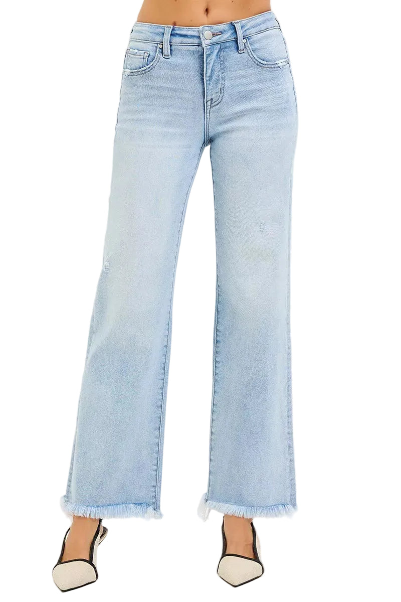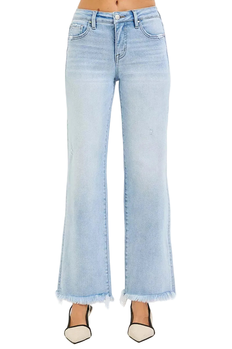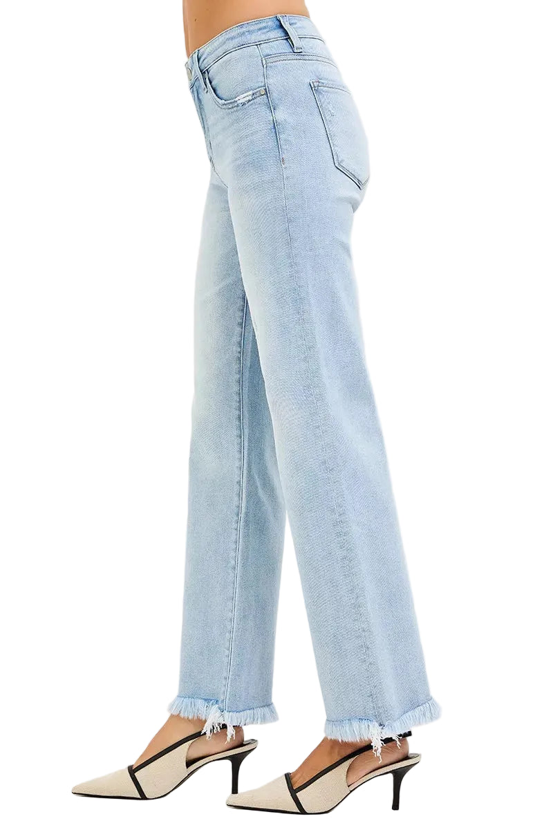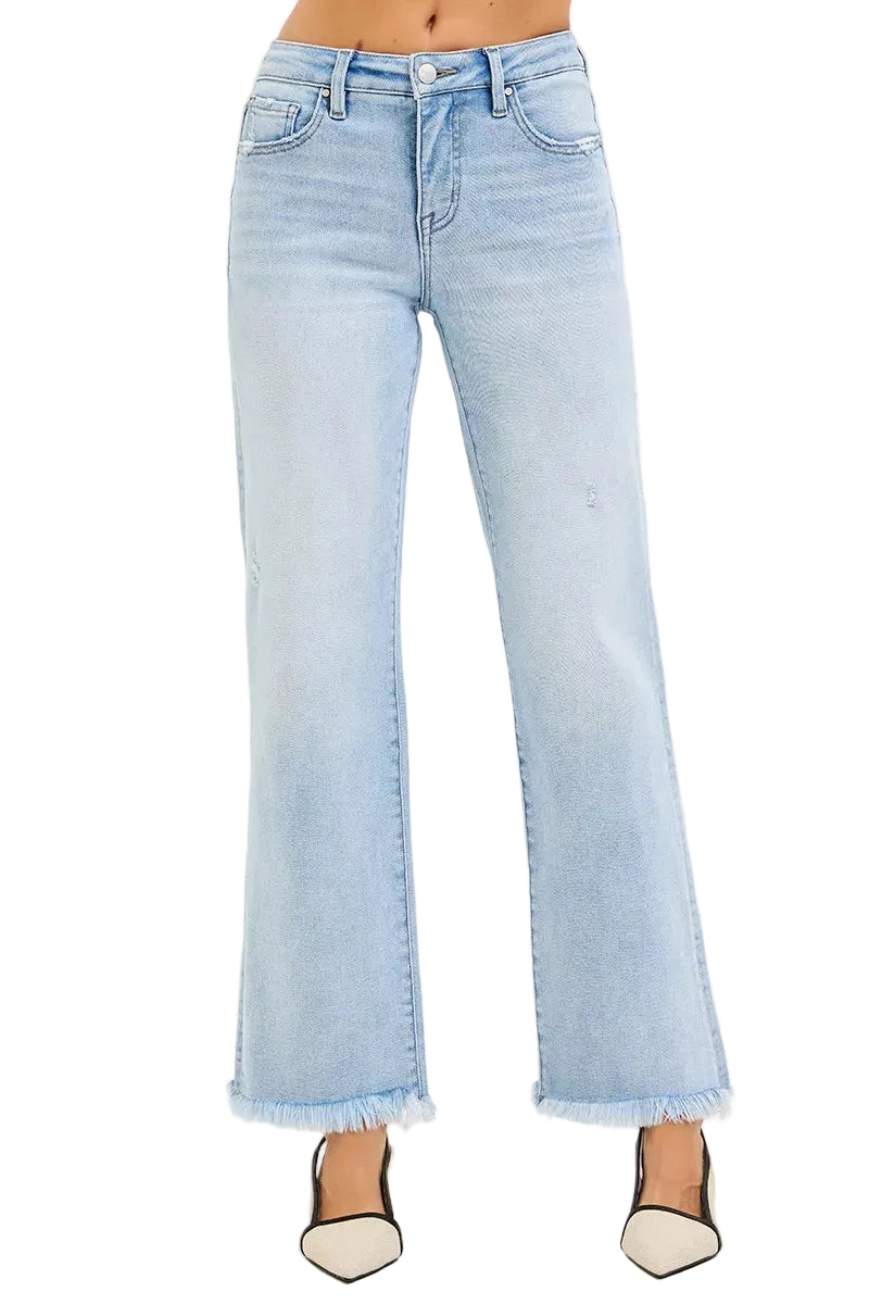 Embrace the allure of effortless elegance with the RISEN Tummy Control Mid Rise Ankle Straight Fray Hem Jeans. These enchanting jeans caress your curves, offering a flattering silhouette that whispers romance with every step.