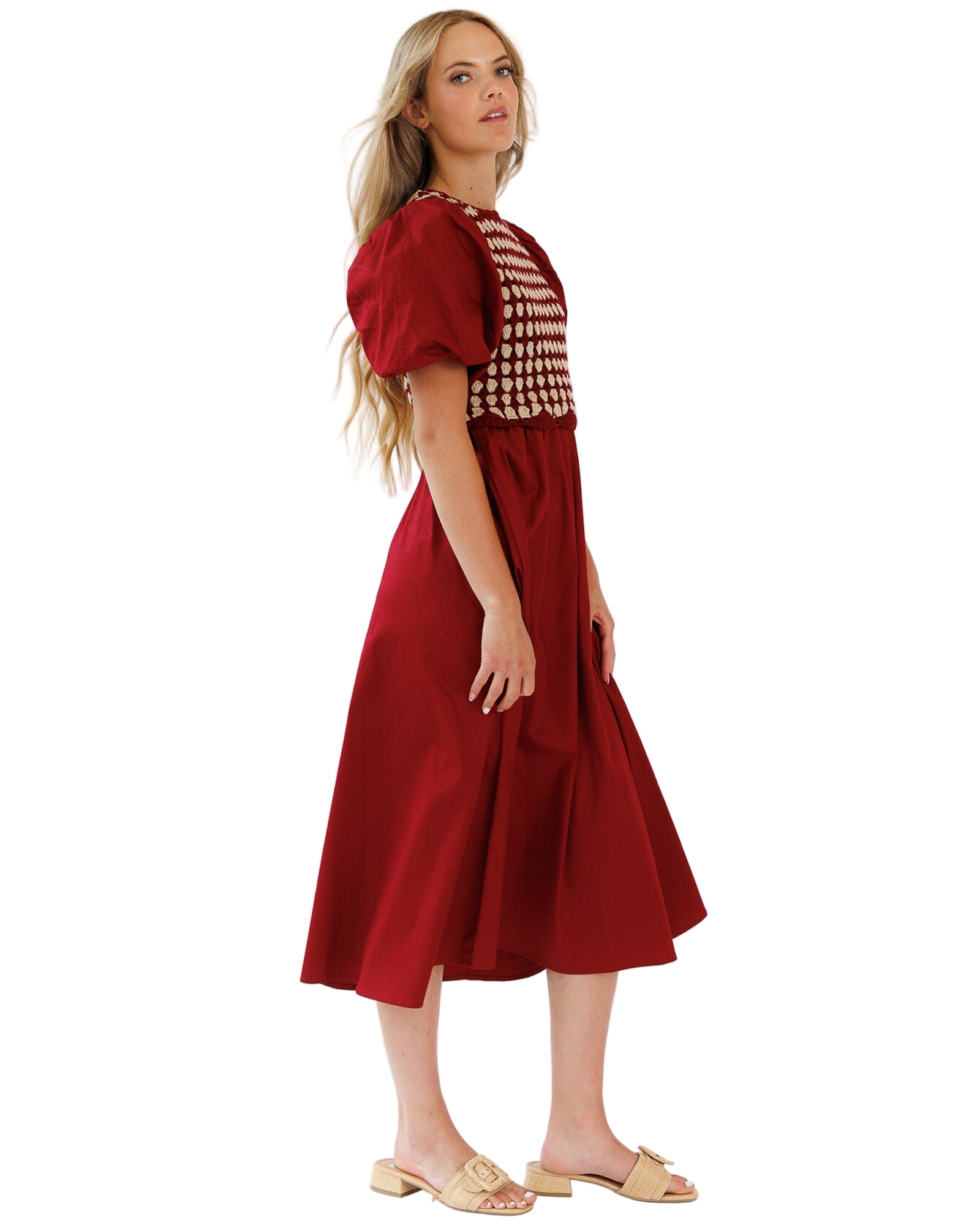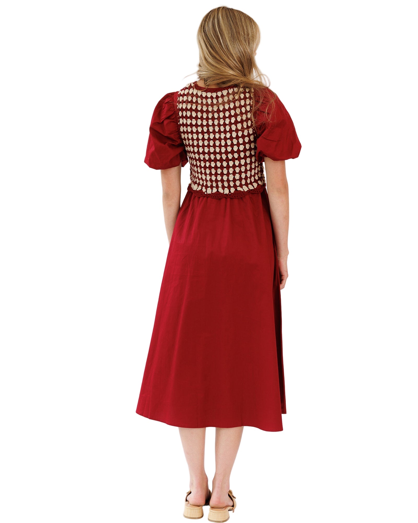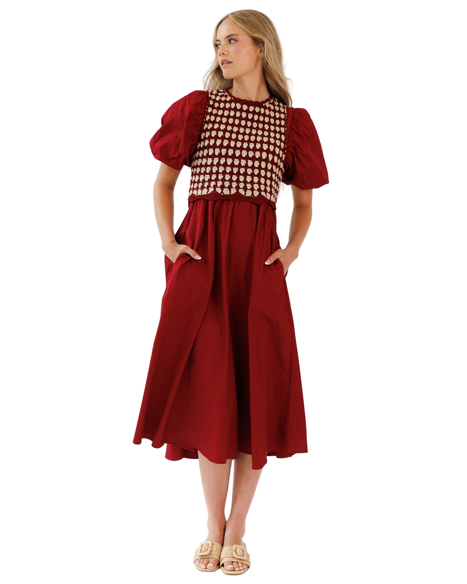 Step into a world of romance with the Elevate Dress Set, where elegance meets comfort. This enchanting A-line midi dress, adorned with bubble sleeves, whispers sweet nothings of sophistication. The knitted top, paired with woven sleeves and a flowing skirt, caresses your skin like a lover's embrace.