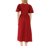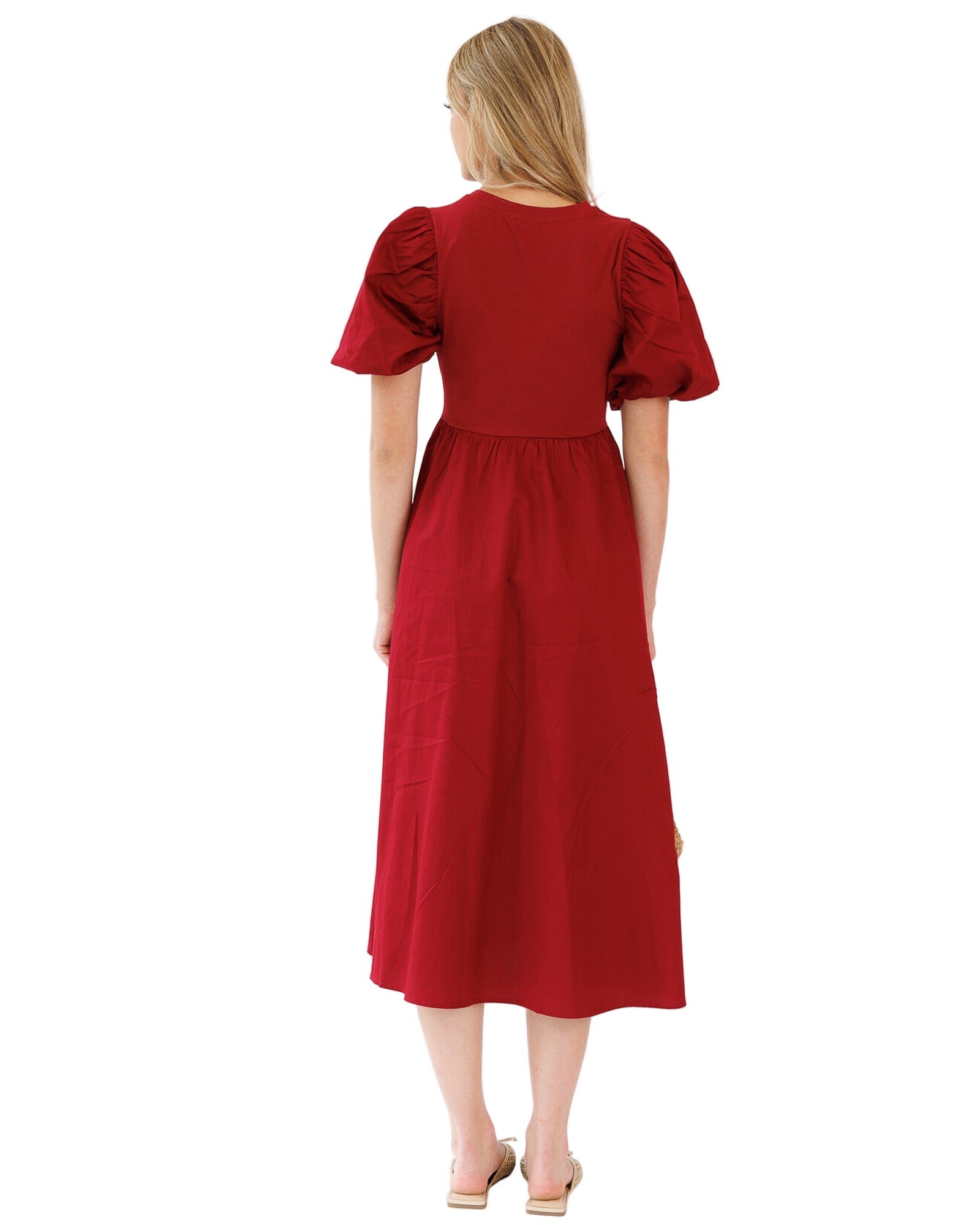 With side seam pockets for practicality, this dress is as functional as it is beautiful. Crafted from a luxurious blend of cotton and spandex, it promises to move with you, making every moment feel like a dance under the stars.