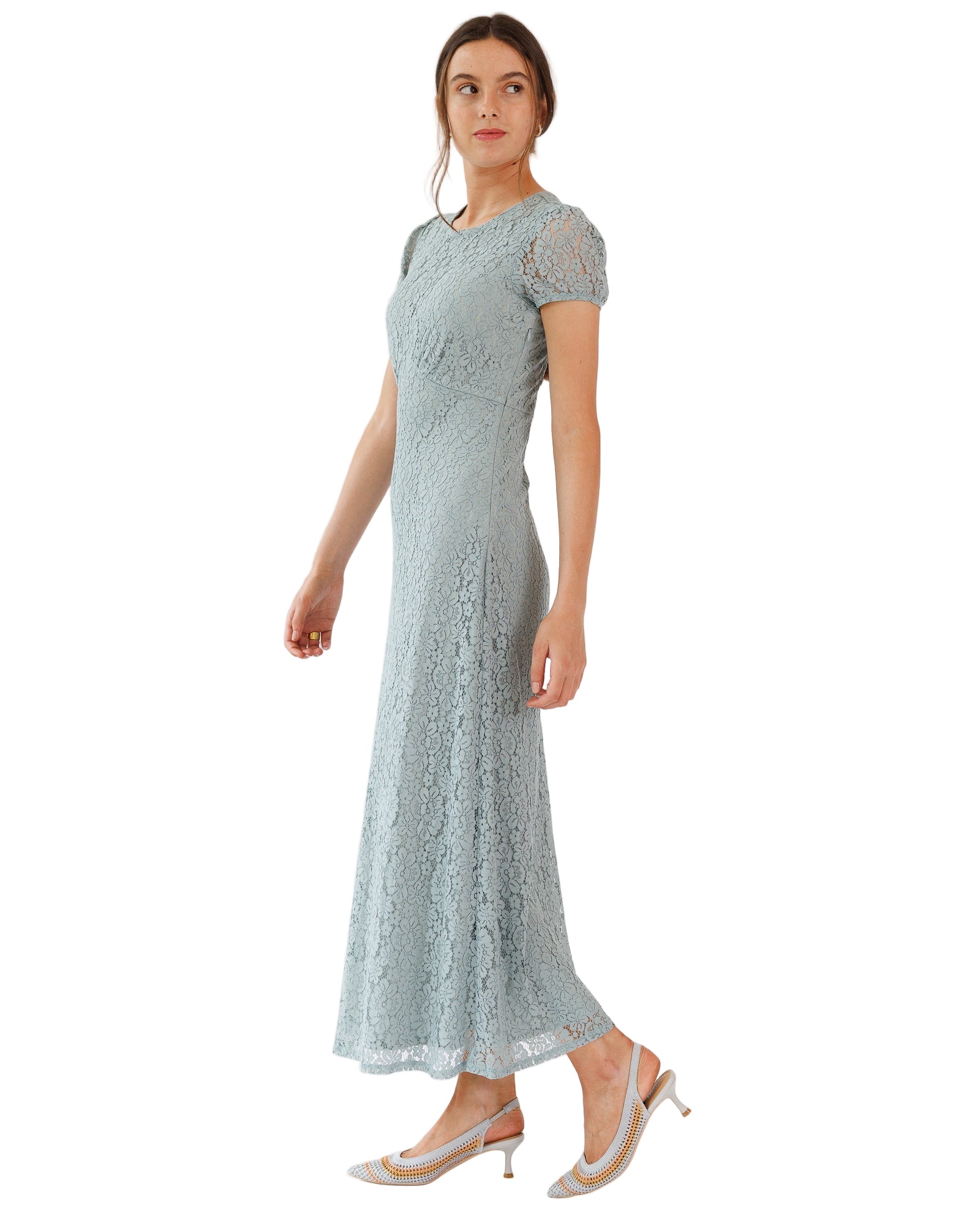 Embrace the allure of romance with the Natalie Dress, a captivating sheath that gracefully flows to a maxi length. Its scoop neckline, adorned with a delicate back key-hole, invites admiration, while the front waist detail adds a touch of elegance.
