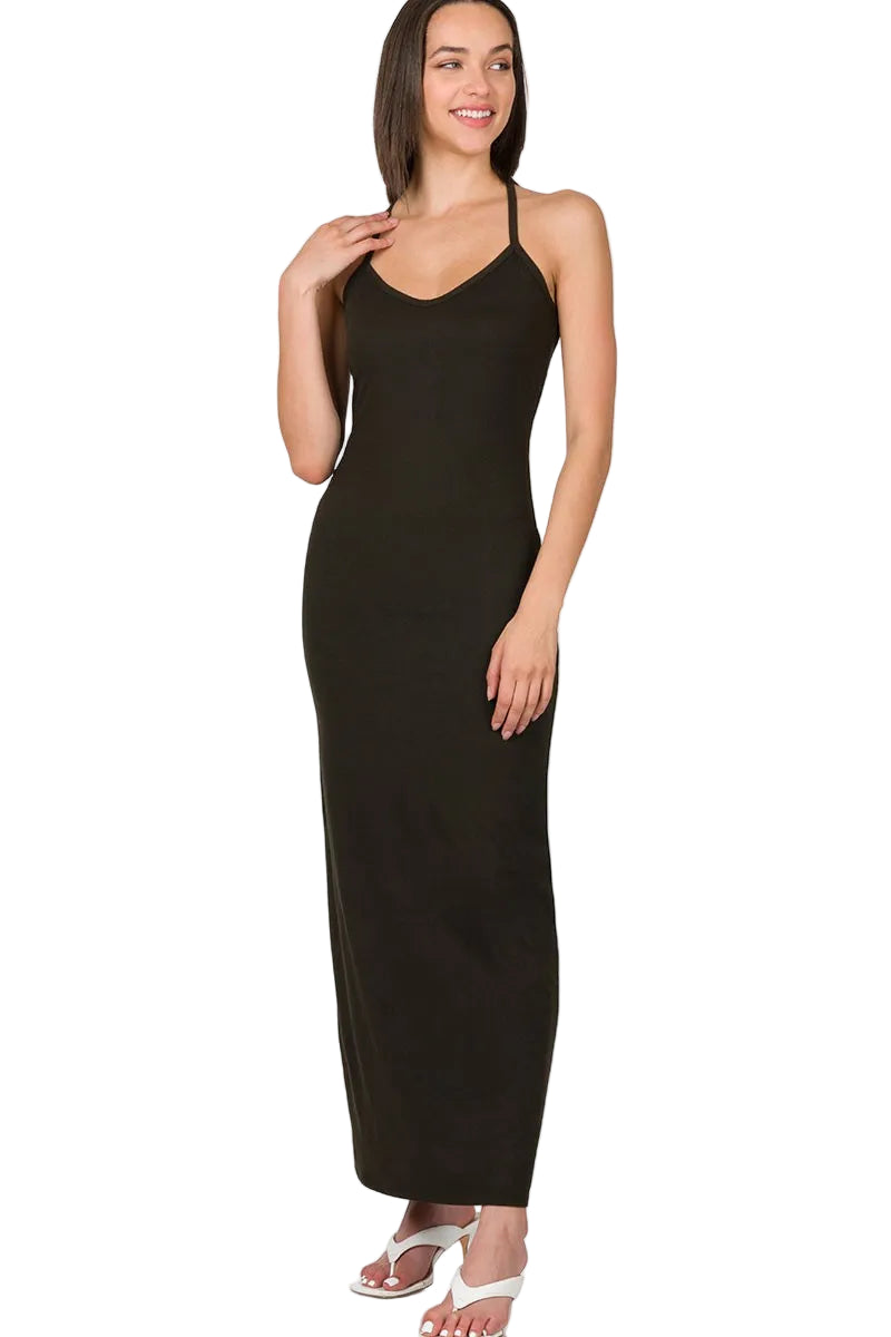 Embrace the essence of romance with the Zenana Brushed Dty Thin Strap Racerback V-Neck Maxi Dress. Crafted from luxuriously soft brushed DTY fabric, this dress envelops you in comfort, making every moment feel like a gentle caress.