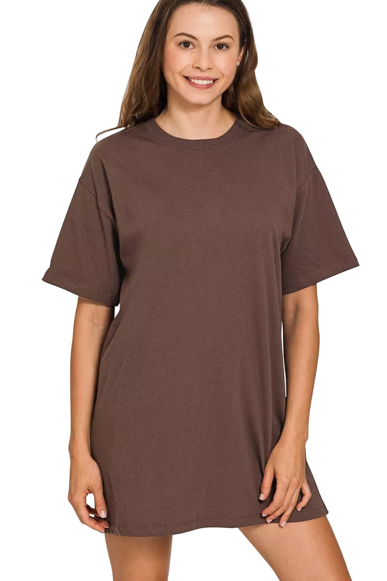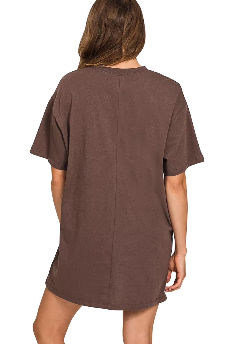 Embrace the essence of effortless romance with the Zenana Short Sleeve Mini Tee Dress. This enchanting piece drapes gracefully over your silhouette, inviting comfort and style into your everyday moments. Crafted from a soft cotton blend, it whispers against your skin, making each wear feel like a gentle caress.