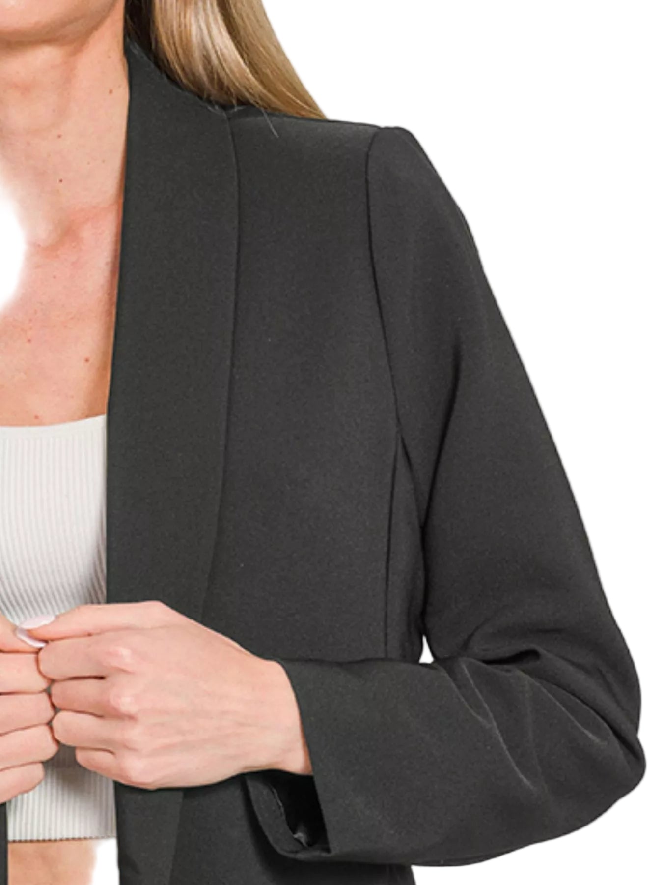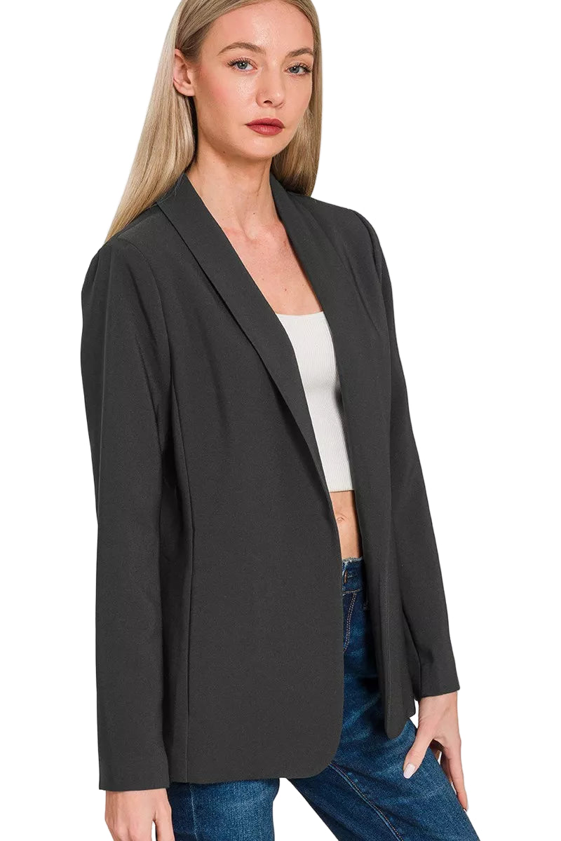 Embrace the allure of sophistication with the Zenana Woven Long Sleeve Blazer. This exquisite piece wraps you in a gentle embrace, blending professional elegance with a touch of romance. Its open-front design invites effortless layering, allowing you to transition from the boardroom to a candlelit dinner with grace.