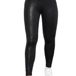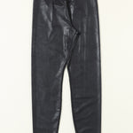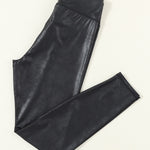 Embrace your inner allure with the Black Crossed Dip Waist Sleek Leather Leggings. These enchanting leggings caress your curves, whispering elegance and confidence with every step you take.
