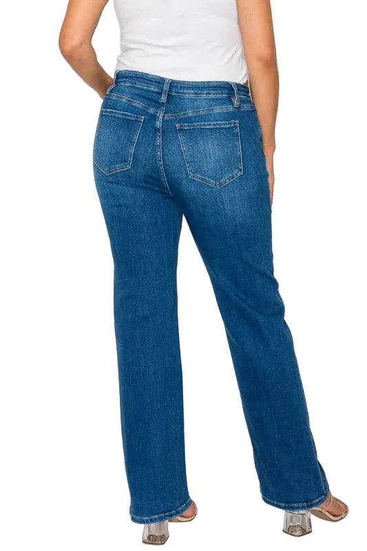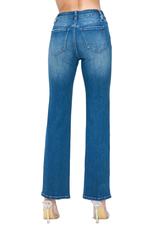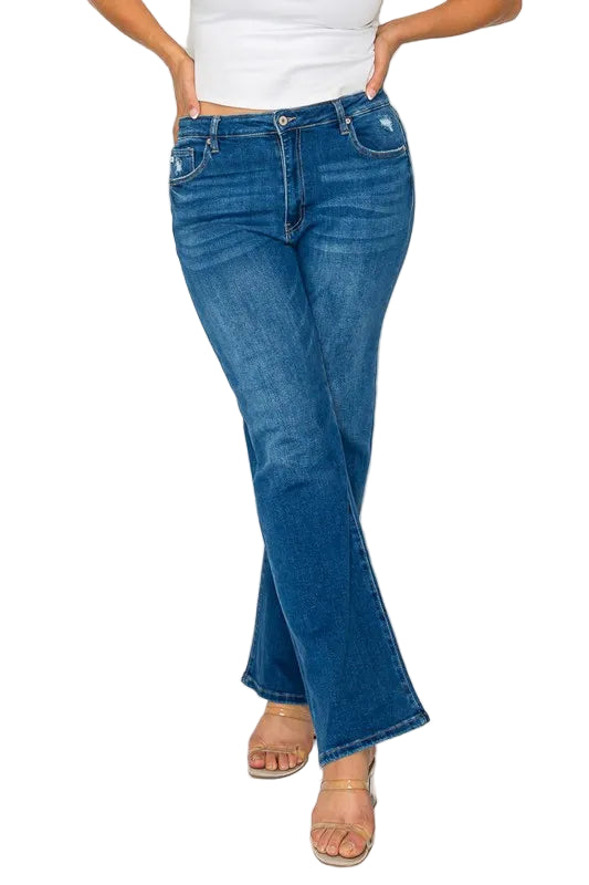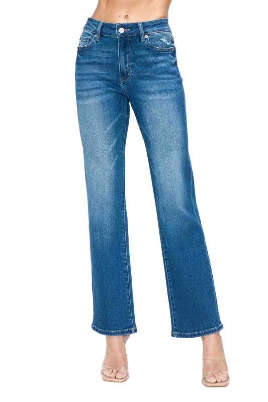 Embrace the allure of timeless elegance with the bytos Full Size Cat's Whiskers High Rise Straight Jeans. Crafted from premium denim, these jeans whisper romance with their classic blue wash and enchanting cat's whiskers fade pattern.