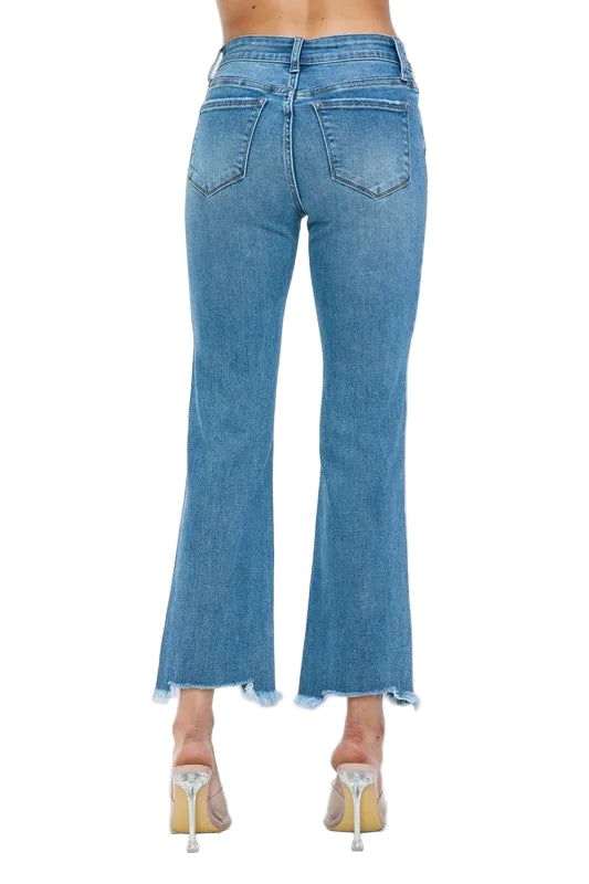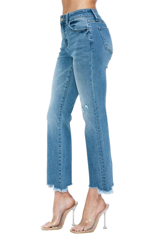 Embrace the allure of effortless style with the Bytos Raw Hem Distressed Mid Rise Crop Jeans. These enchanting jeans caress your curves, offering a flattering mid-rise fit that whispers elegance. The raw hem detailing adds a touch of romance, while the distressed elements evoke a sense of vintage charm.