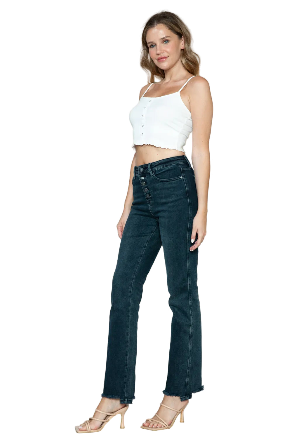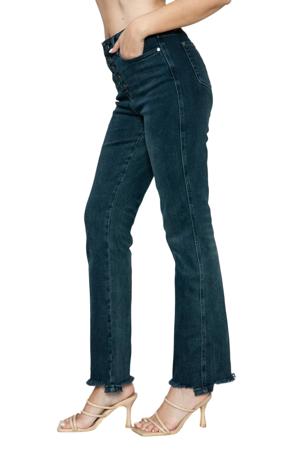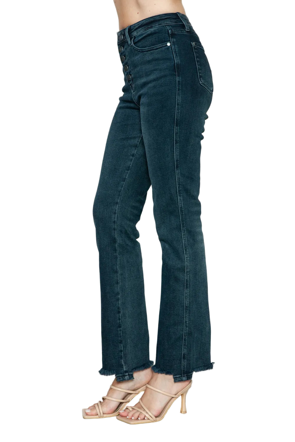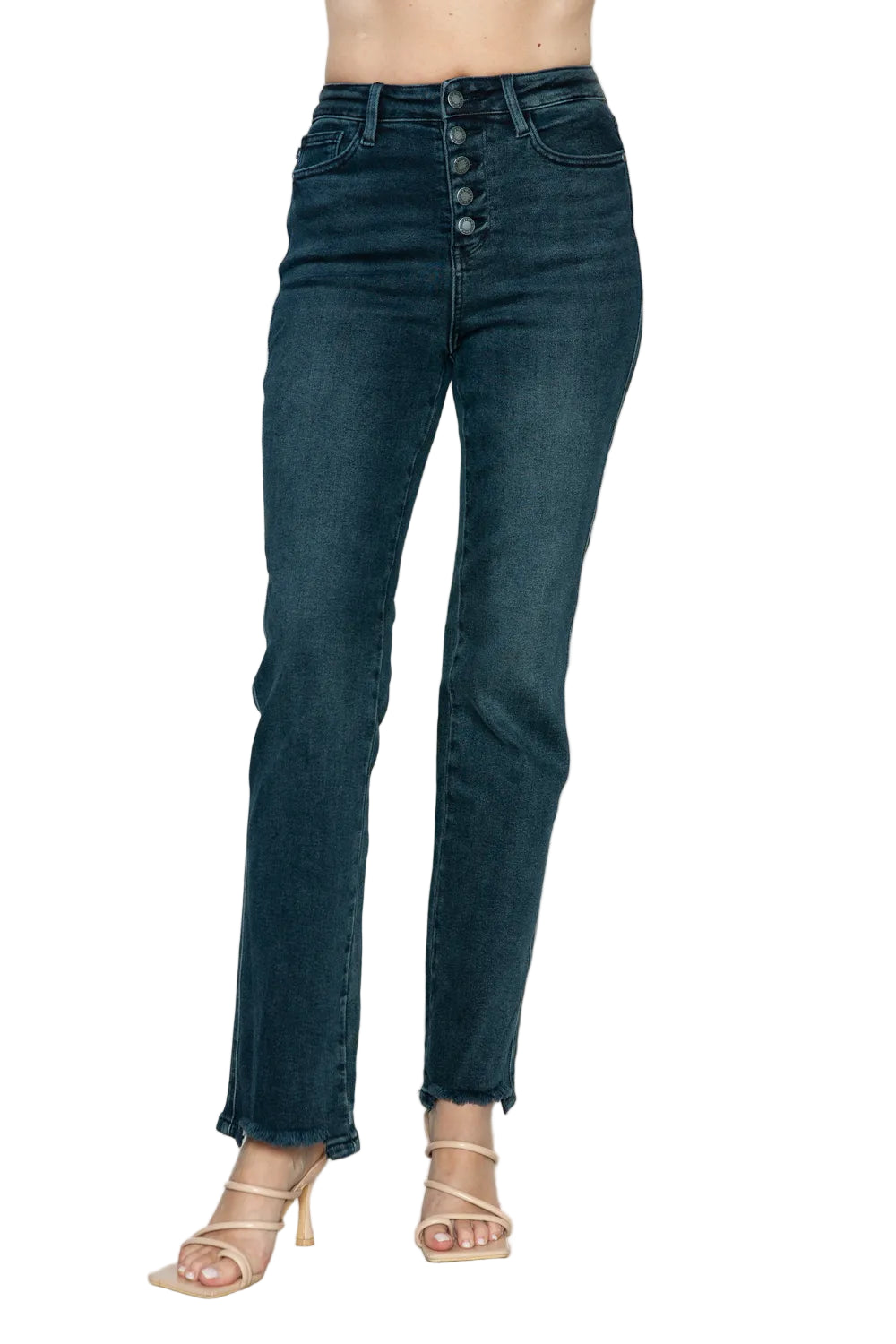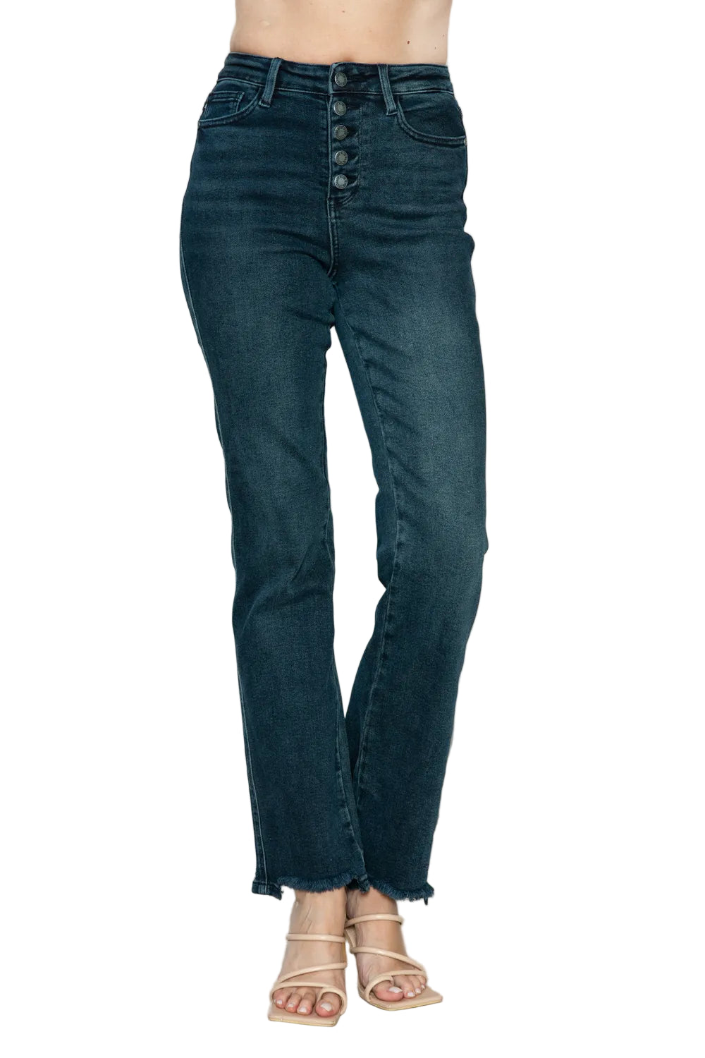 Embrace the allure of effortless elegance with the Judy Blue Full Size Button Fly Hem Destroy Straight Jeans. These jeans are a love letter to your wardrobe, blending a classic silhouette with a modern twist that whispers romance in every stitch.