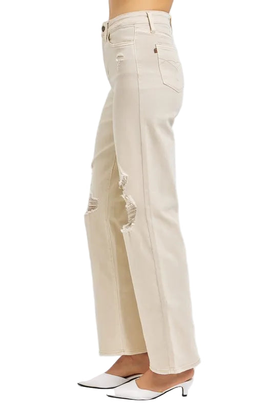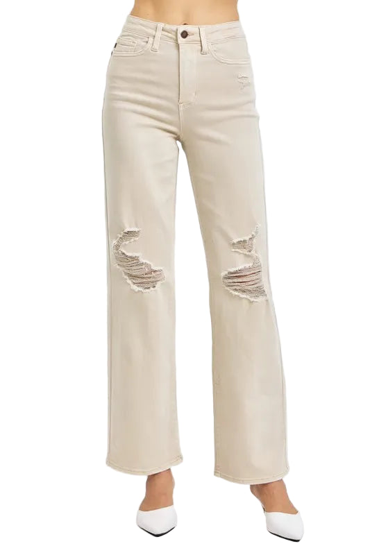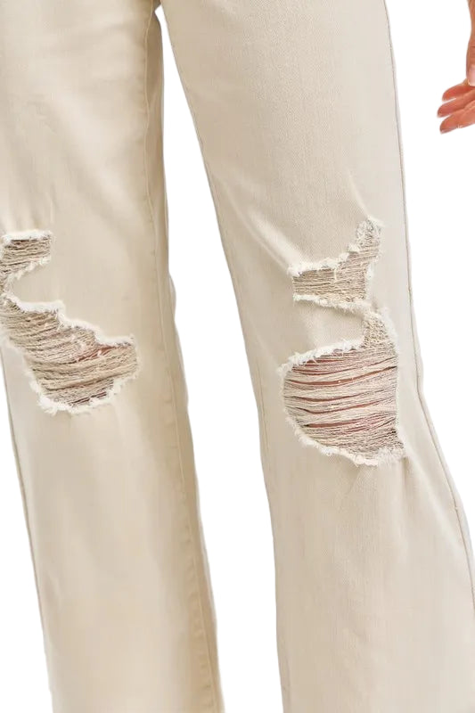 With their charming distressed details and wide leg design, they dance effortlessly between casual and chic. Crafted from a soft blend of cotton and spandex, they promise comfort while making a bold statement. Pair them with a delicate blouse or a playful tee, and let your style bloom like a garden in spring.