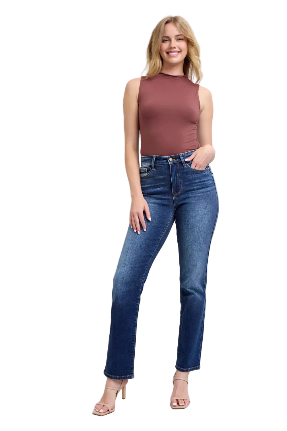 Embrace the allure of effortless elegance with our Full Size Washed Straight Leg Jeans. Each pair is a gentle caress against your skin, crafted from a soft blend of cotton and spandex that moves with you, celebrating your every curve.