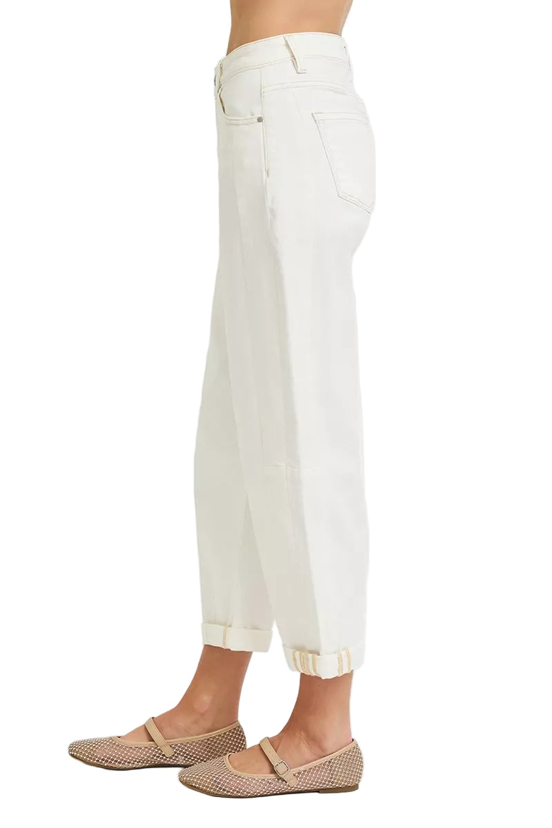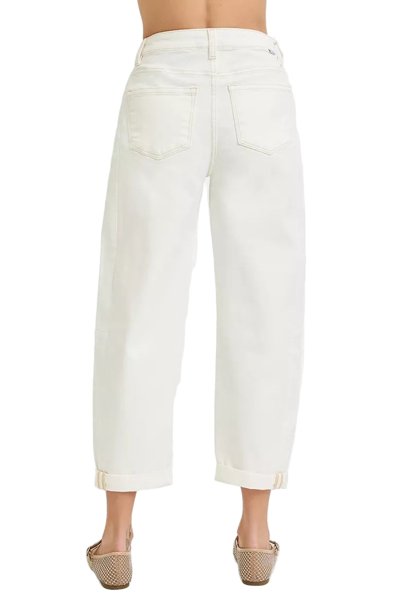 Embrace the allure of effortless elegance with our Full Size High Rise Barrel Cropped Jeans. These jeans are not just a piece of clothing; they are a celebration of your curves, designed to enhance your natural beauty. The high-waisted silhouette gently hugs your waist, creating a romantic shape that whispers sophistication.