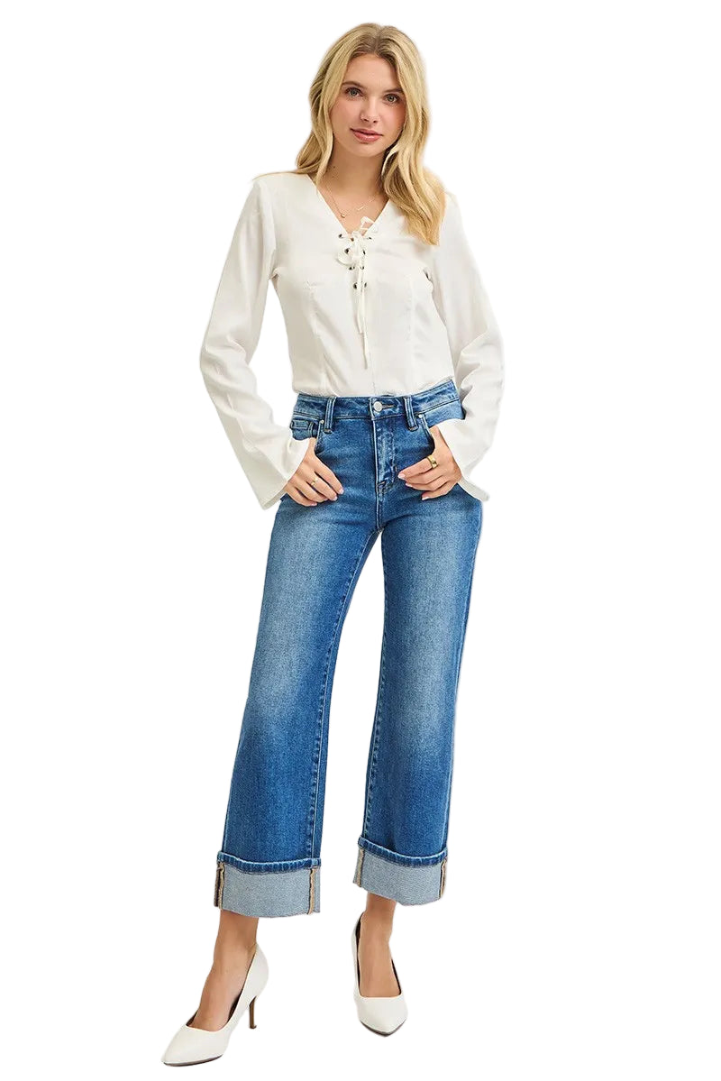 Embrace the allure of effortless elegance with our Full Size Mid Rise Crop Straight Cuffed Jeans. These jeans are not just a wardrobe staple; they are a canvas for your unique style, designed to celebrate your curves and enhance your confidence.