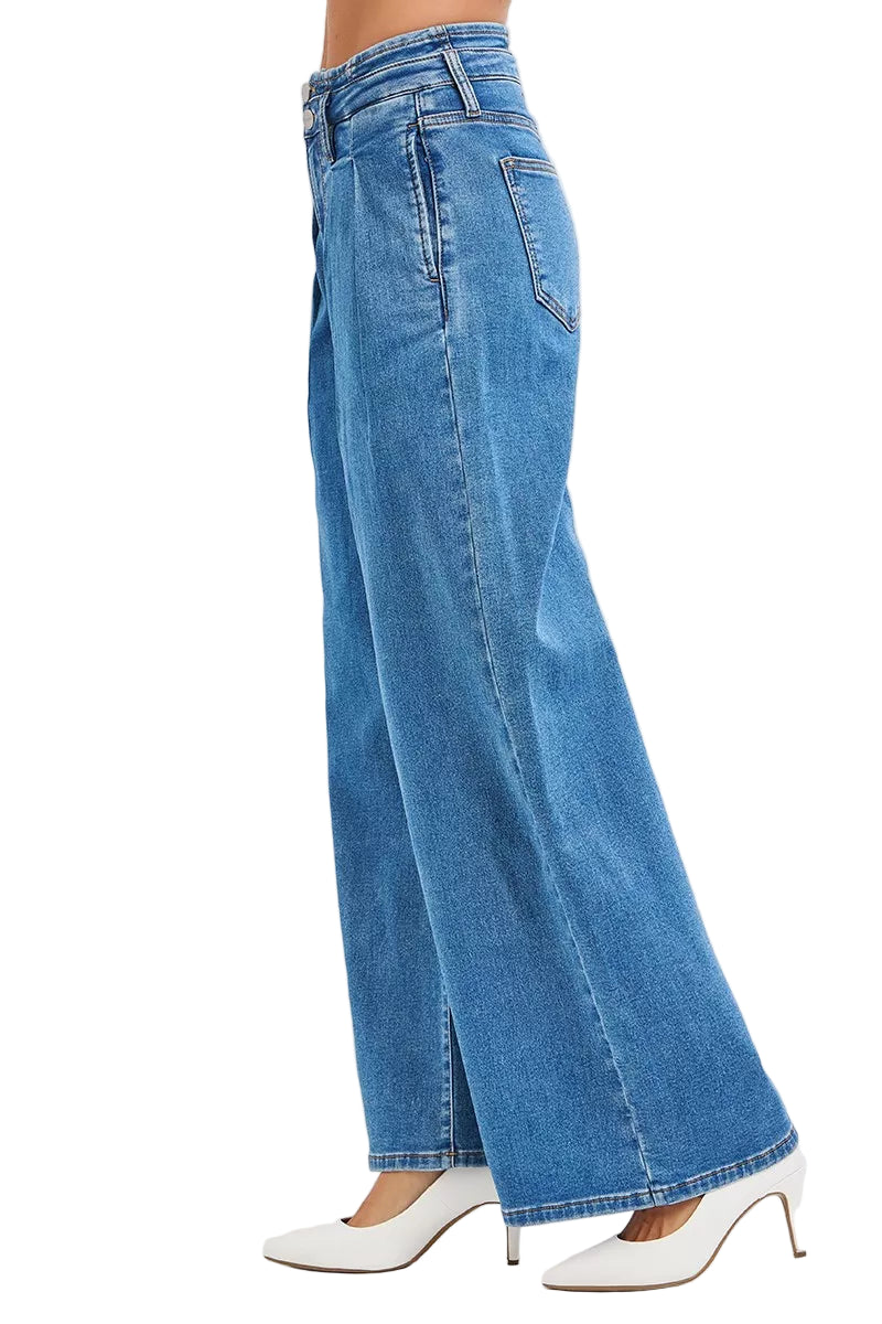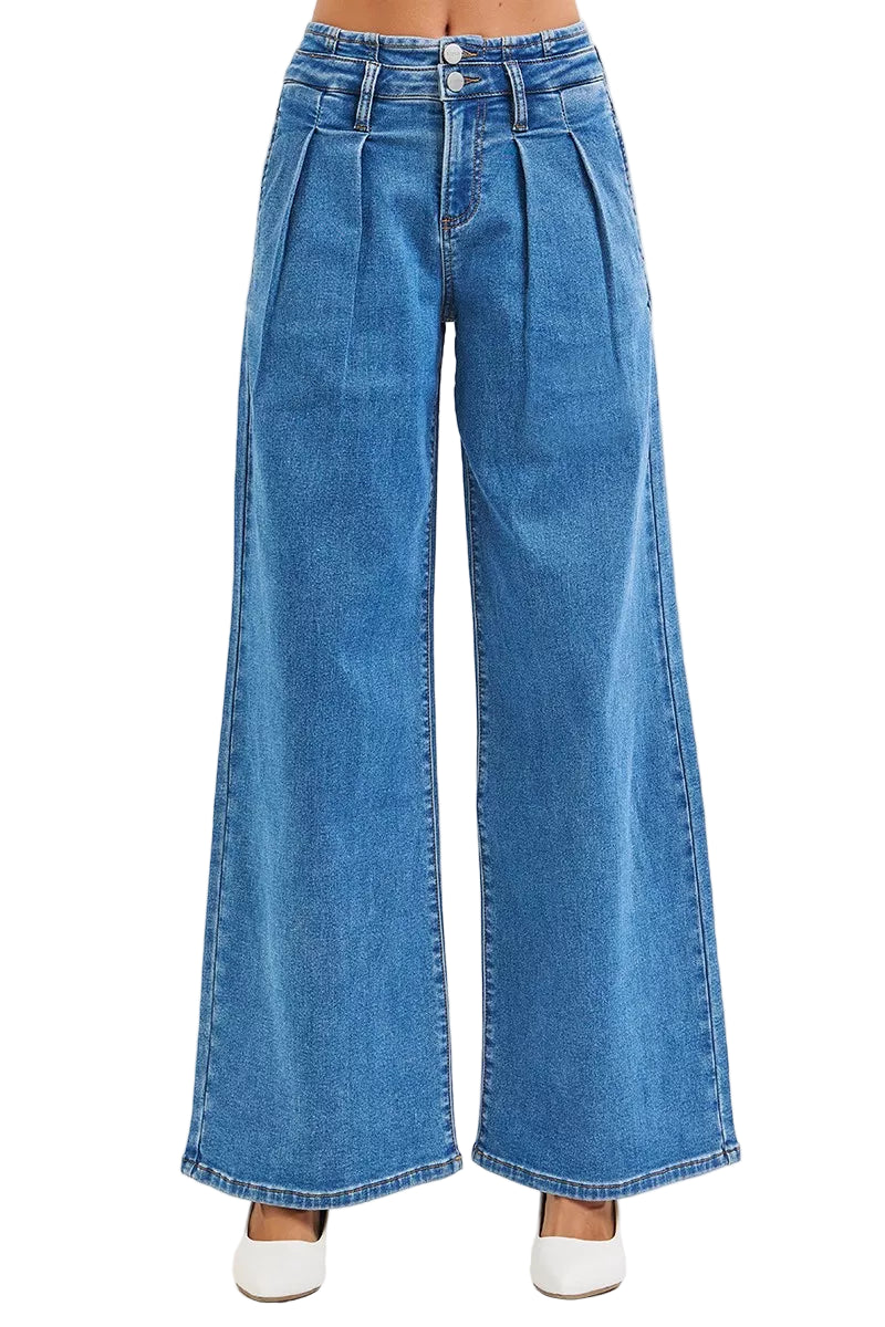 Embrace the allure of elegance with our Full Size Mid Rise Fit Wide Leg with Pleated Detail Jeans. These jeans are not just a wardrobe staple; they are a romantic ode to your curves, designed to celebrate your unique beauty.