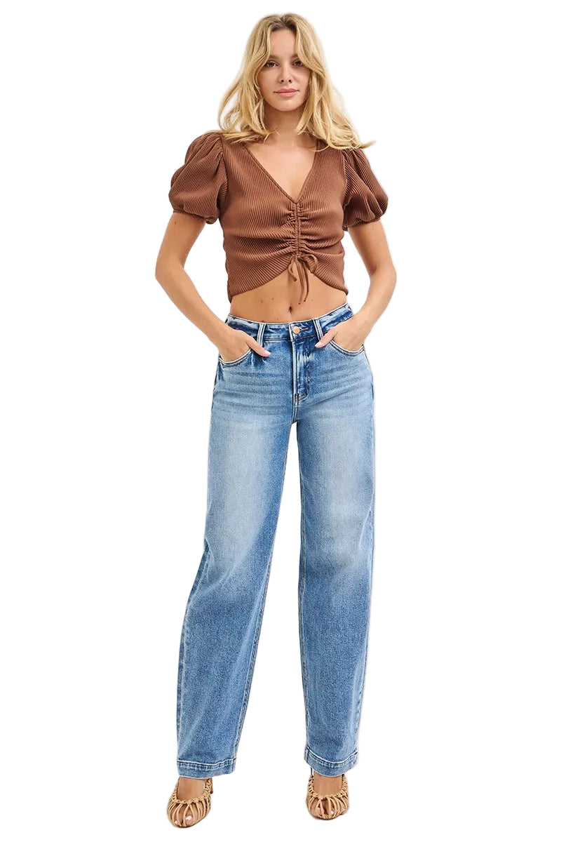 Whisper sweet nothings to your wardrobe with the RISEN High Rise Wide Baggy Jeans. These enchanting jeans embrace your silhouette, their high rise waist lovingly elongating your legs, while the wide, baggy fit wraps you in a cocoon of comfort. Perfect for those leisurely strolls under the stars or casual rendezvous, they effortlessly blend style with ease.