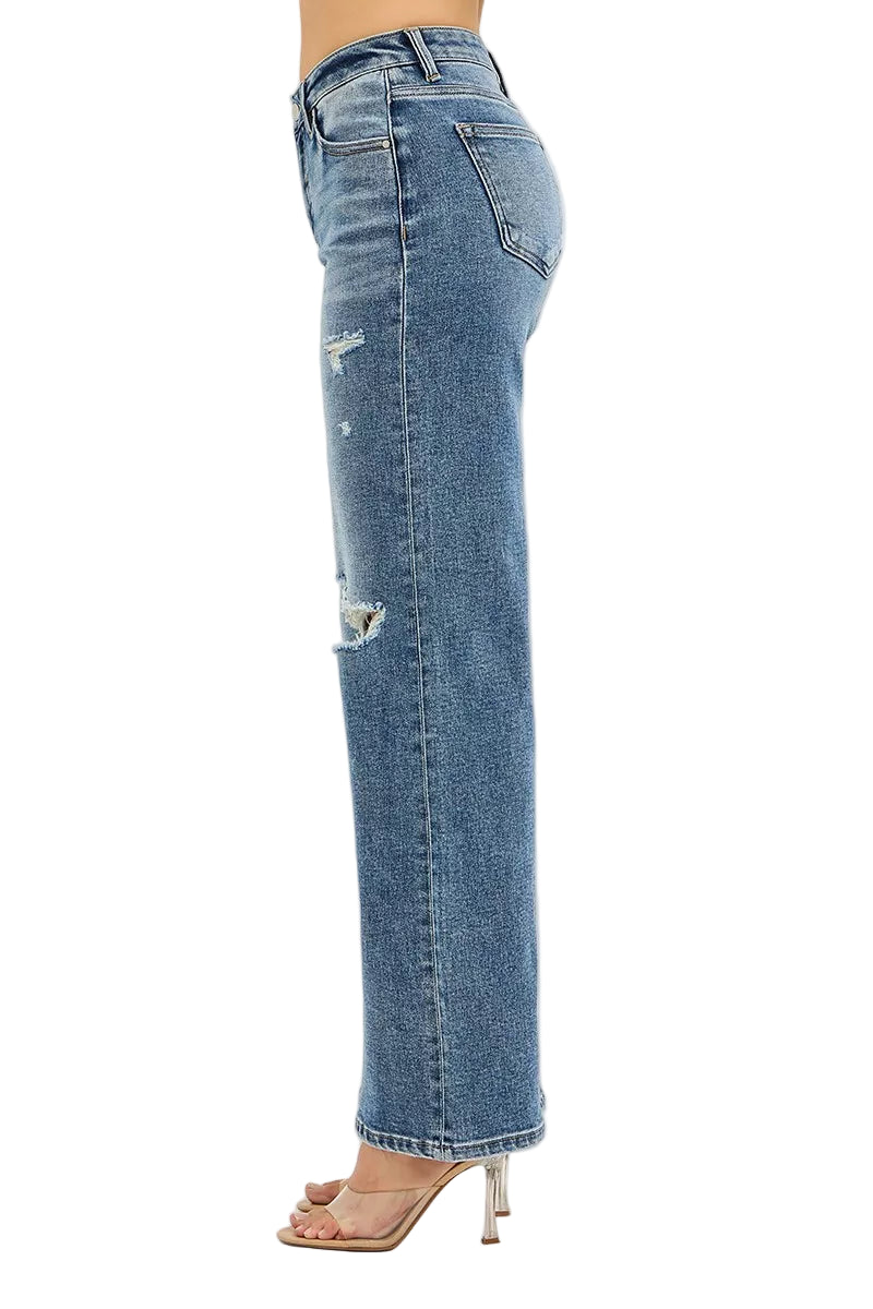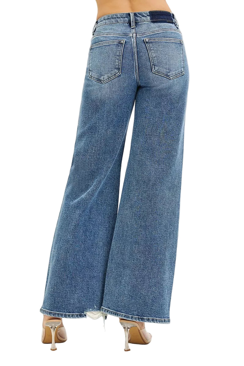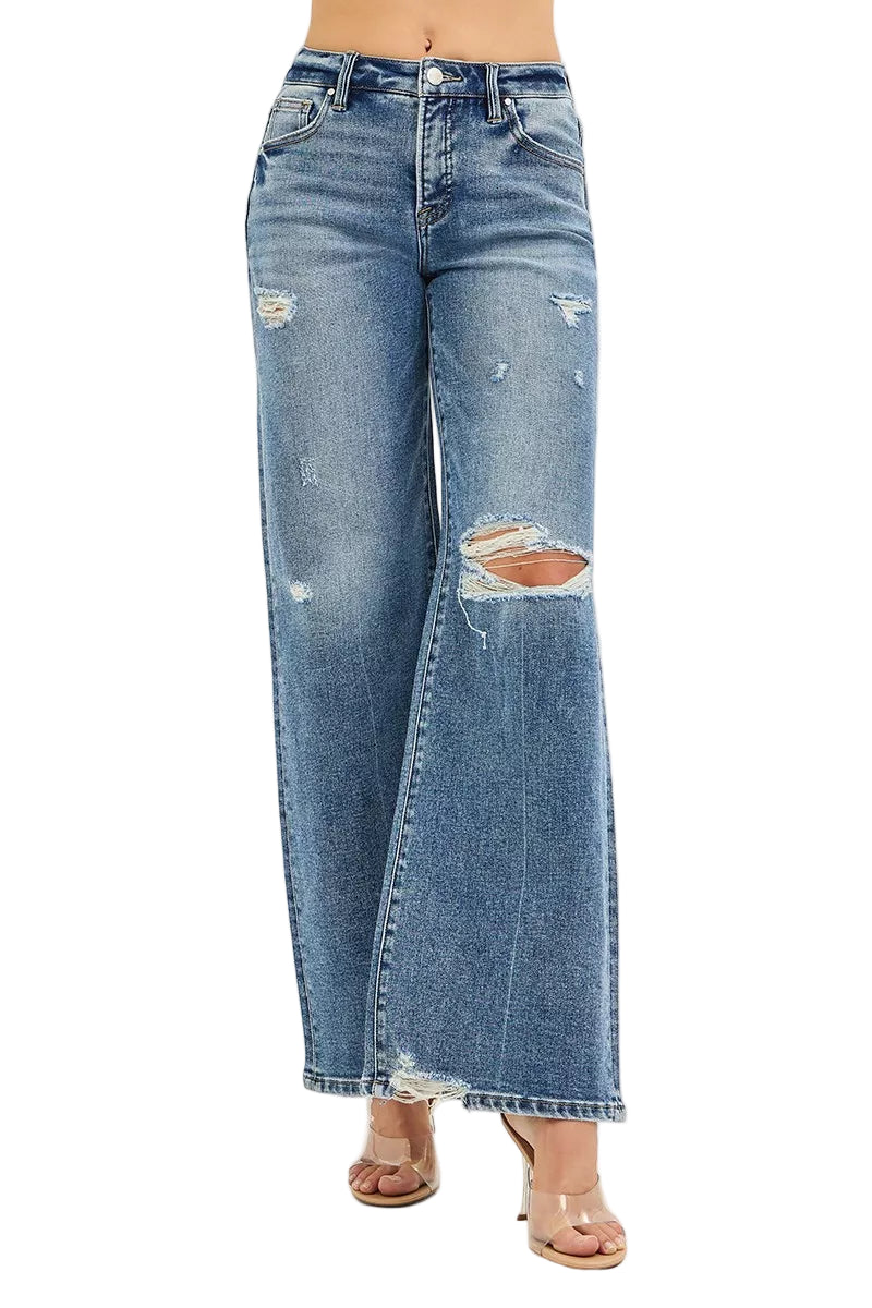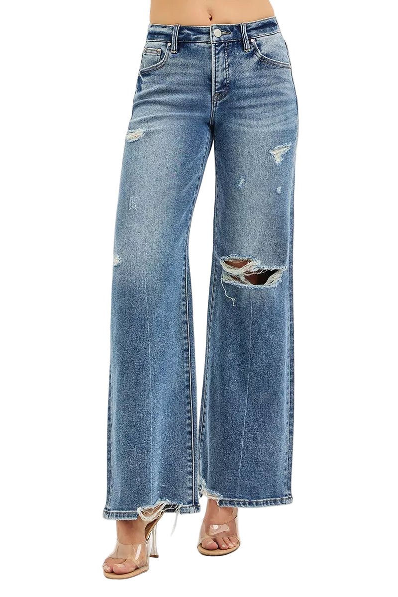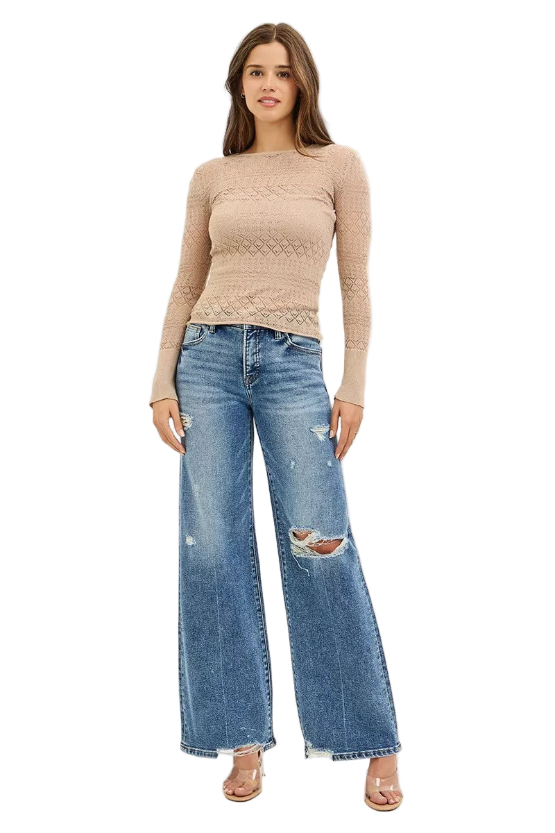 With delicate distressed details and a flowing wide leg cut, these jeans are perfect for romantic strolls or intimate gatherings. Pair them with your favorite crop tops or blouses, and let your style bloom like a garden in spring.