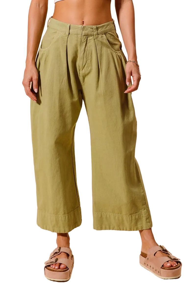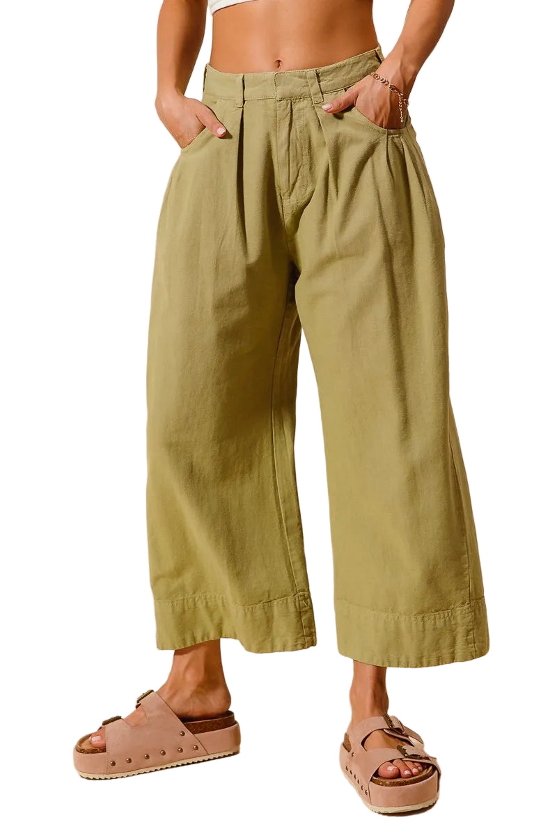 Embrace the essence of romance with the SO ME Mid Rise Wide Leg Chino Pants. Crafted in a soft olive green, these pants whisper elegance and comfort, inviting you to dance through summer days with ease.