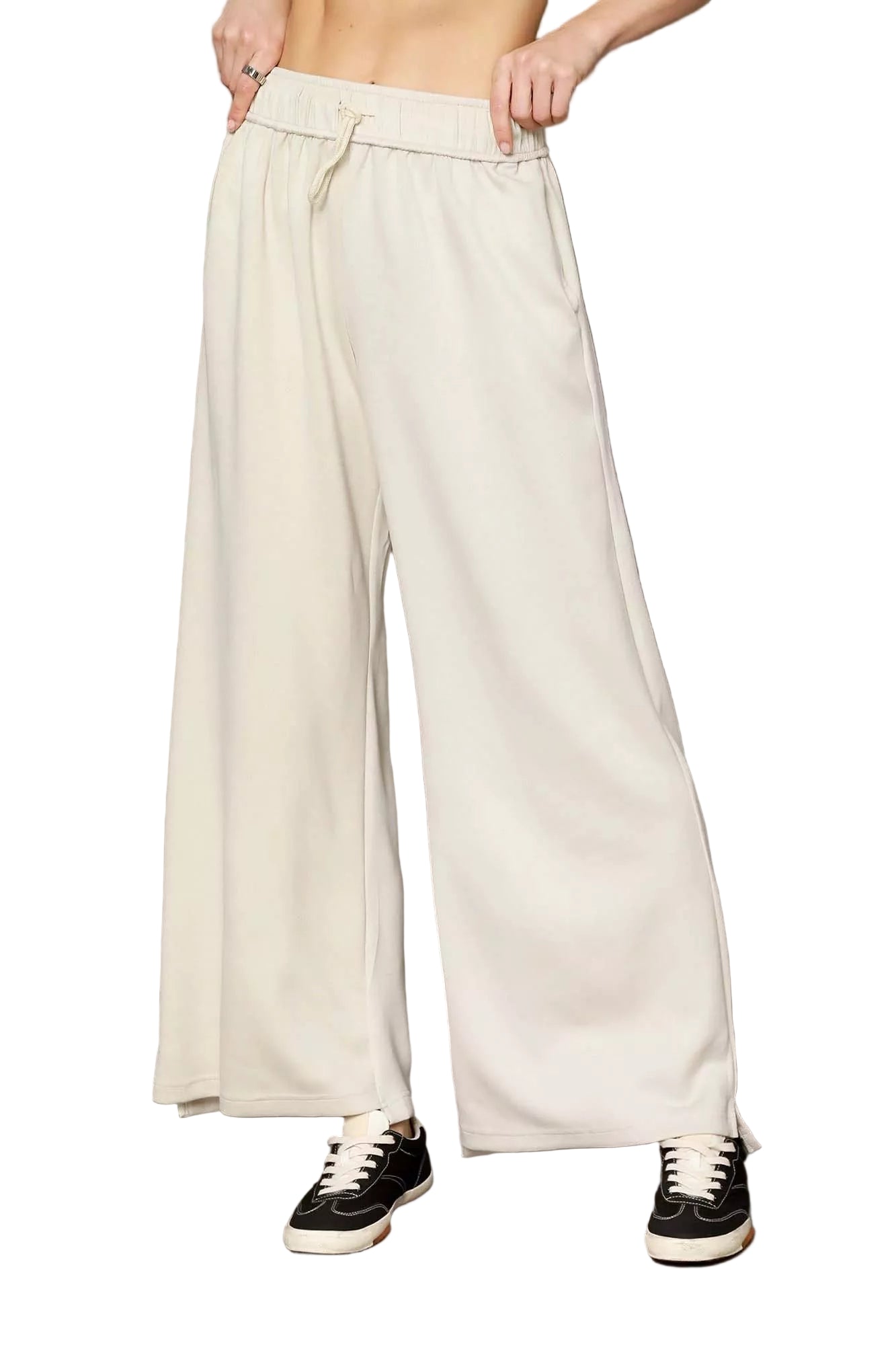Umgee Elastic Drawstring Waistband Wide Leg Pants