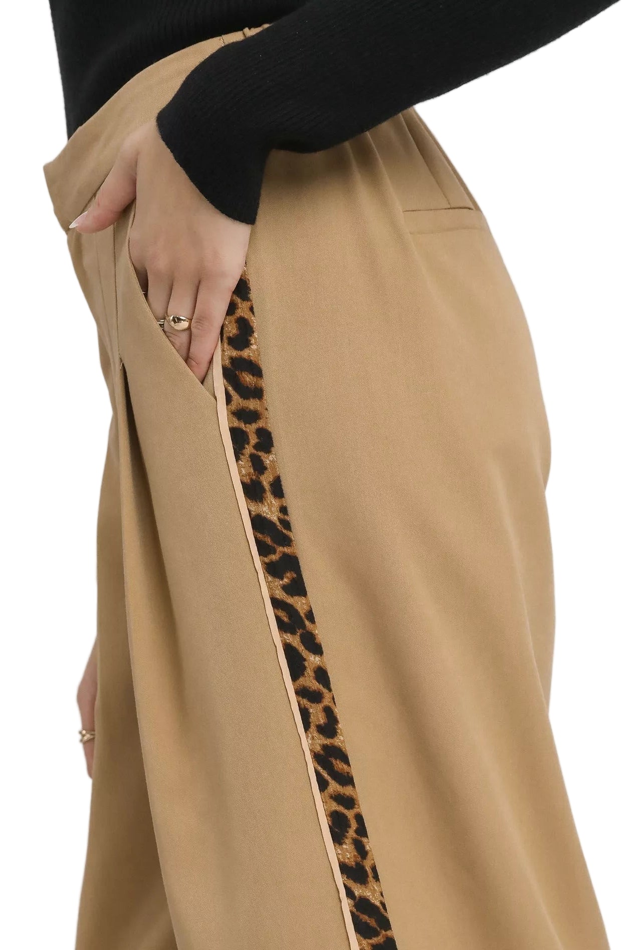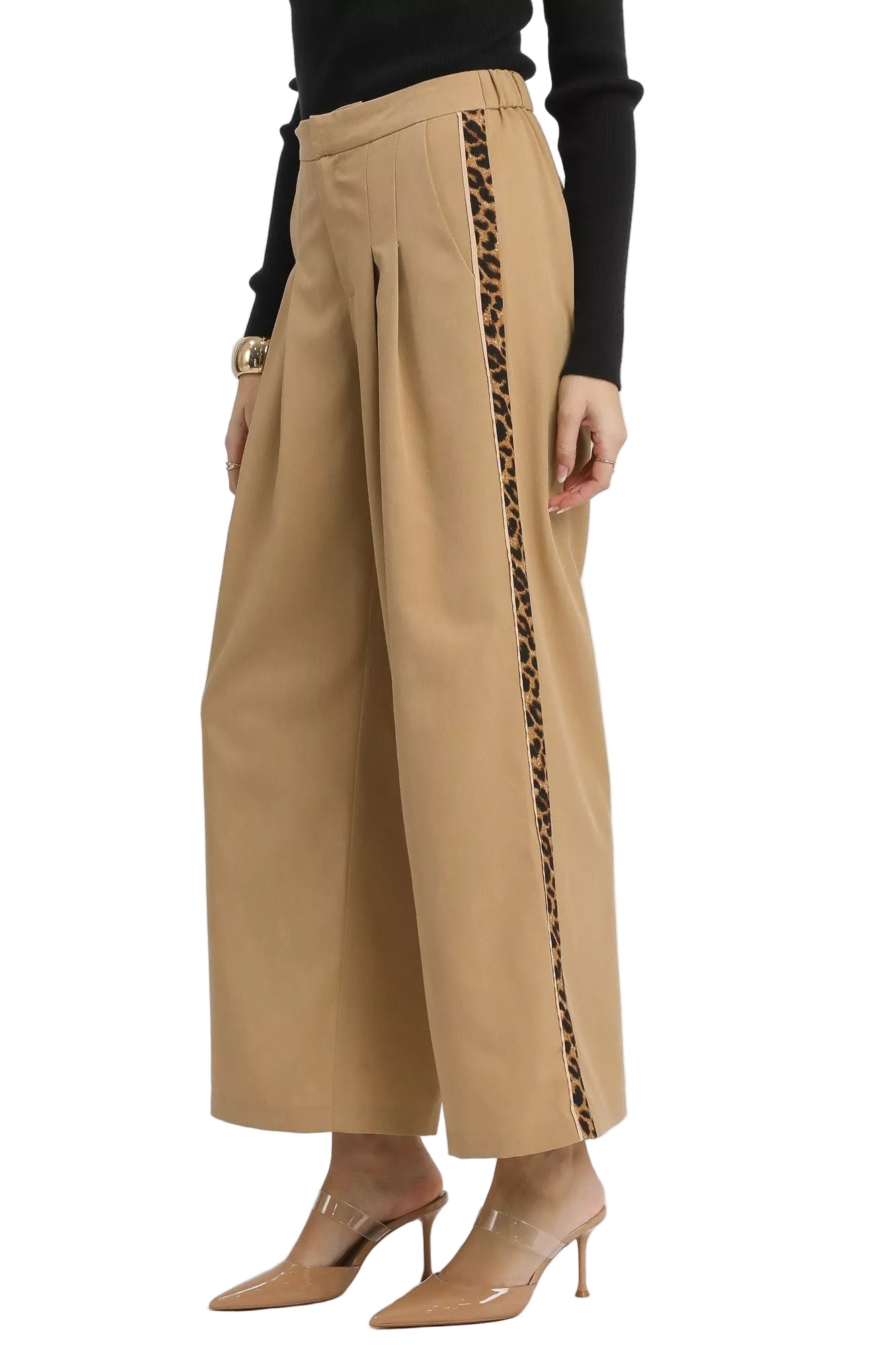 Adorned with contrast trim, these pants invite a playful touch of color, igniting your outfit with a spark of creativity. Perfect for both intimate dinners and sunlit strolls, they are a versatile companion for your heart's adventures. Elevate your wardrobe and let your spirit shine in these enchanting wide-leg pants.