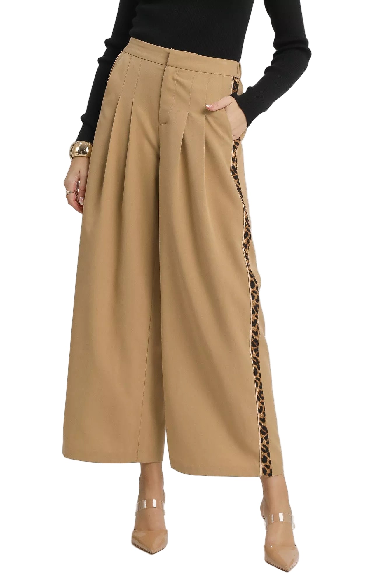 Embrace elegance with the Umgee Front Pleated Wide-Leg Pants, where sophistication meets romance. The delicate front pleats whisper of timeless charm, sculpting a silhouette that flatters every curve. Each step you take in these pants feels like a dance, the wide legs flowing gracefully around you.