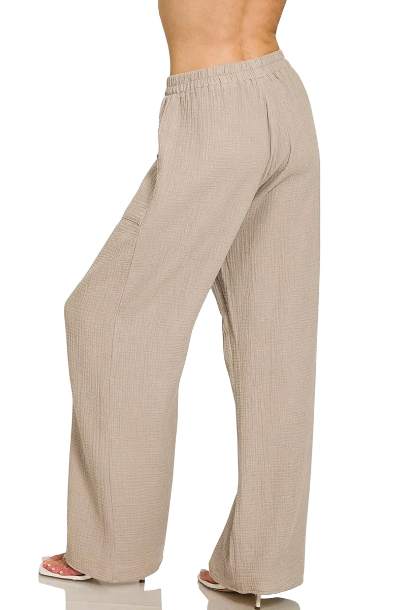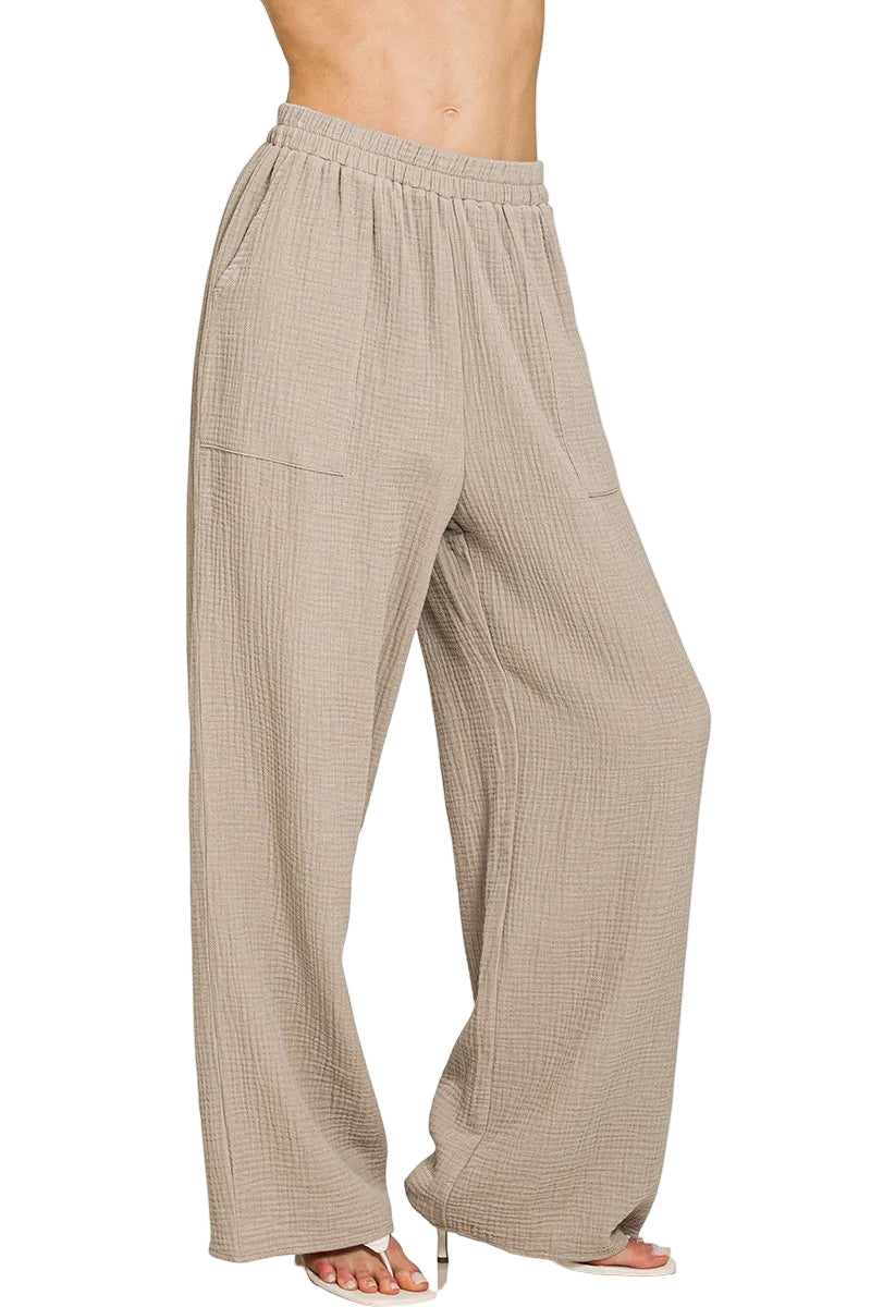 Embrace the gentle caress of summer with the Zenana Double Gauze Elastic Band Pants, where comfort meets elegance. Crafted from 100% cotton, these pants whisper sweet nothings against your skin, inviting you to revel in their lightweight embrace.