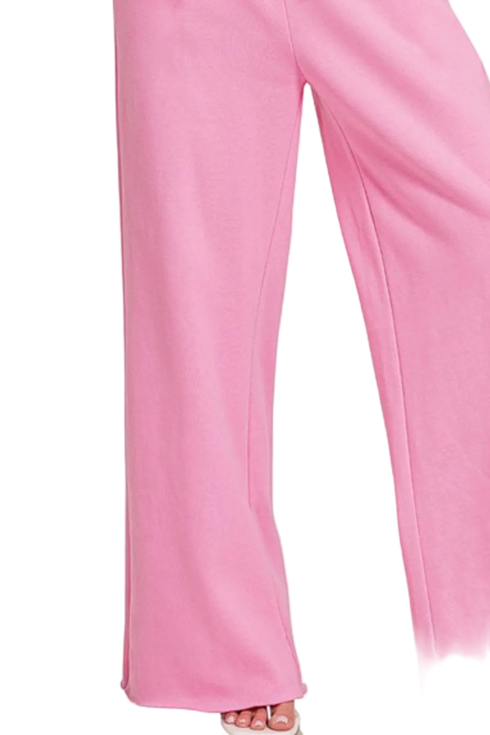 Embrace the allure of comfort with the Zenana Fleece Exposed Seam Wide Leg Sweatpants. These enchanting pink pants, kissed by the softness of a gentle fabric blend, wrap you in a warm embrace, perfect for those intimate moments of relaxation.