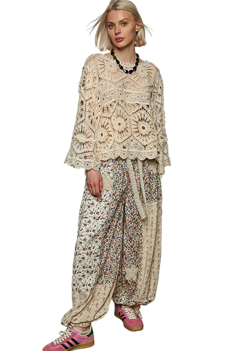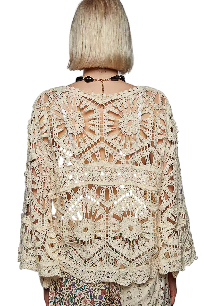 Embrace the allure of romance with the POL Round Neck Weave Knit Pattern Cropped Cover Up. This enchanting piece, adorned with intricate crochet patterns, whispers elegance and sophistication. Its round neck and 3/4 sleeves caress your silhouette, creating a flattering cropped fit that dances gracefully with high-waisted bottoms.