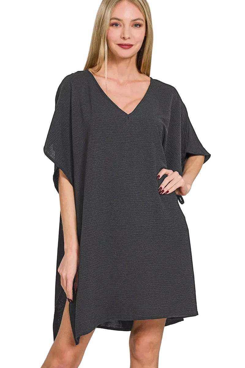 The adjustable tie-side feature allows you to create a silhouette that flatters your figure, while the airy design ensures you remain cool and comfortable. Perfect for layering over your favorite swimwear, this cover-up is a stylish companion for your seaside adventures, exuding effortless elegance and charm.