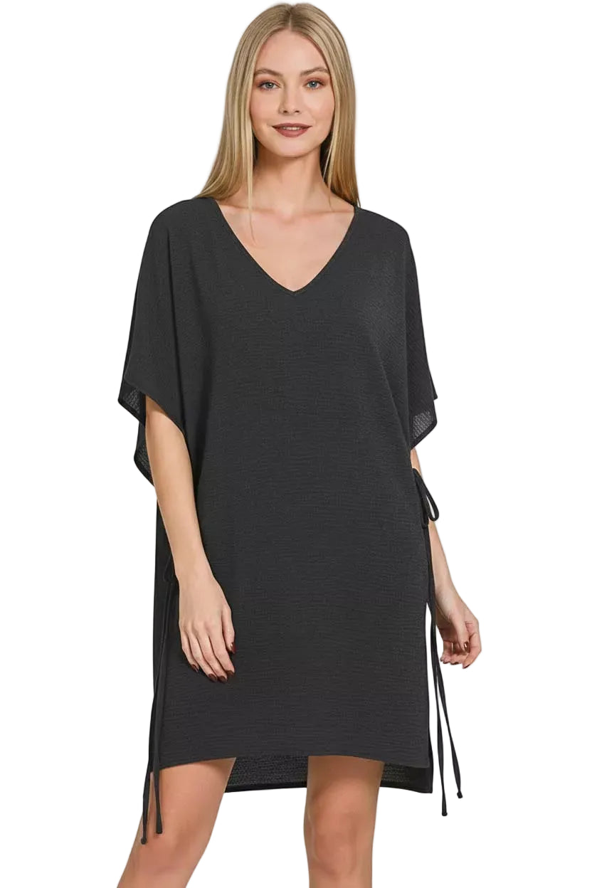 Embrace the essence of summer romance with the Zenana Woven Airflow Tie Side Cover Up. This enchanting garment, crafted from a delicate woven fabric, dances with the breeze, wrapping you in a gentle embrace that whispers of sun-kissed days by the shore.