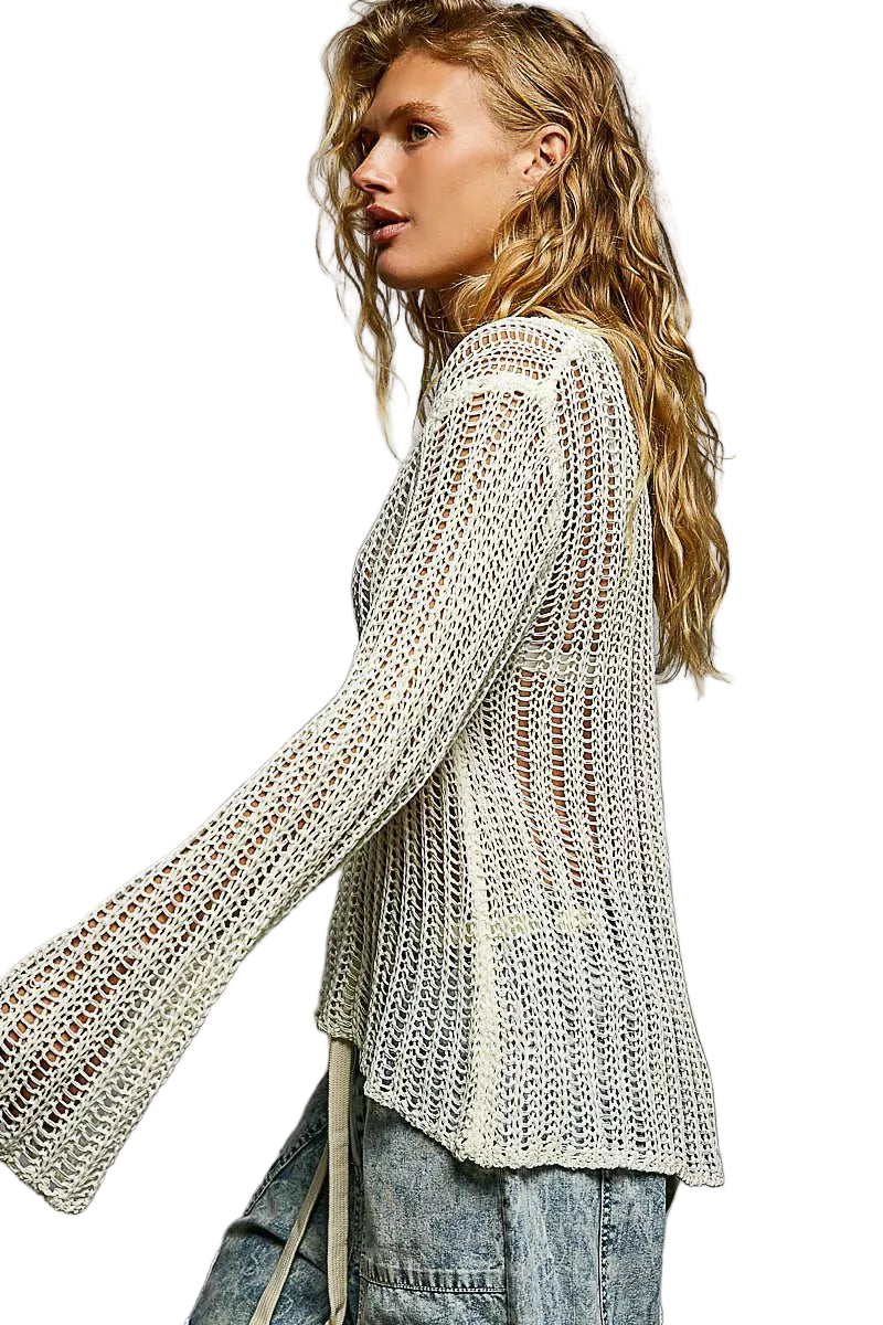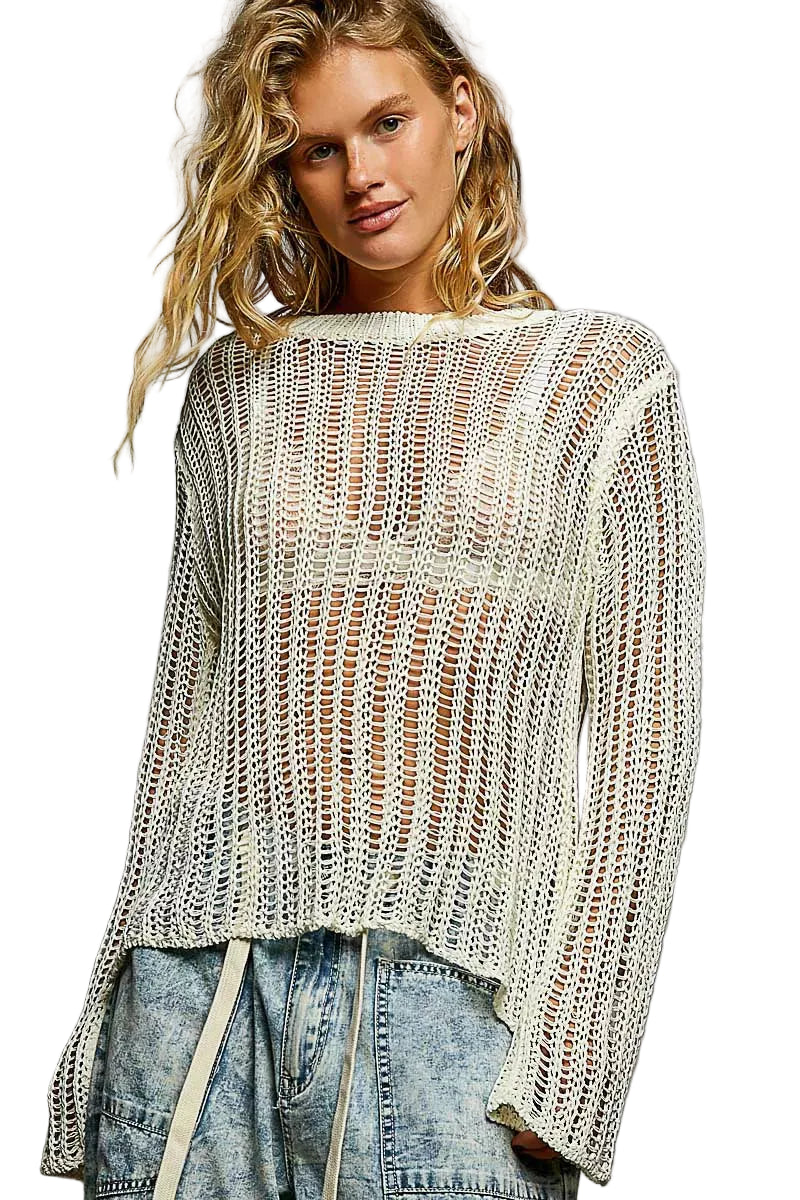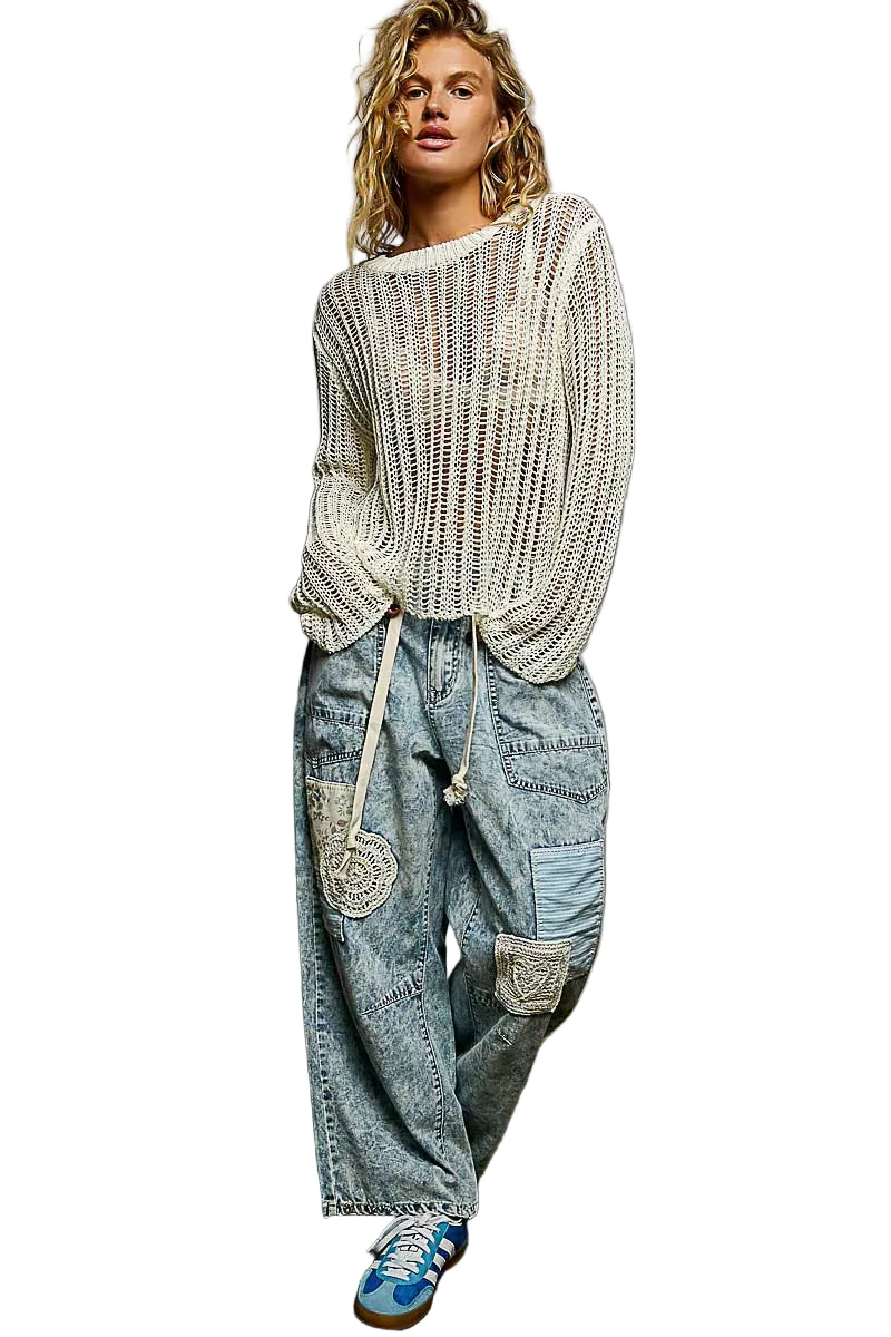 This round neck long sleeve sweater top is crafted in acrylic for a cozy feel. The relaxed fit offers a comfortable and flattering silhouette. The open-knit pattern adds texture and interest to the design. Perfect for layering or wearing on its own, this sweater top is versatile for various occasions. Stay stylish and warm with this fashionable addition to your wardrobe.