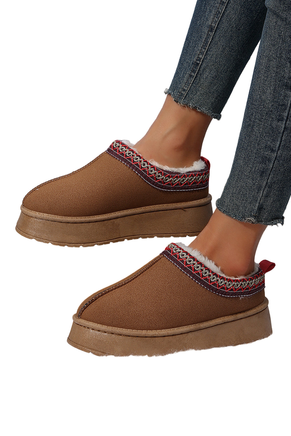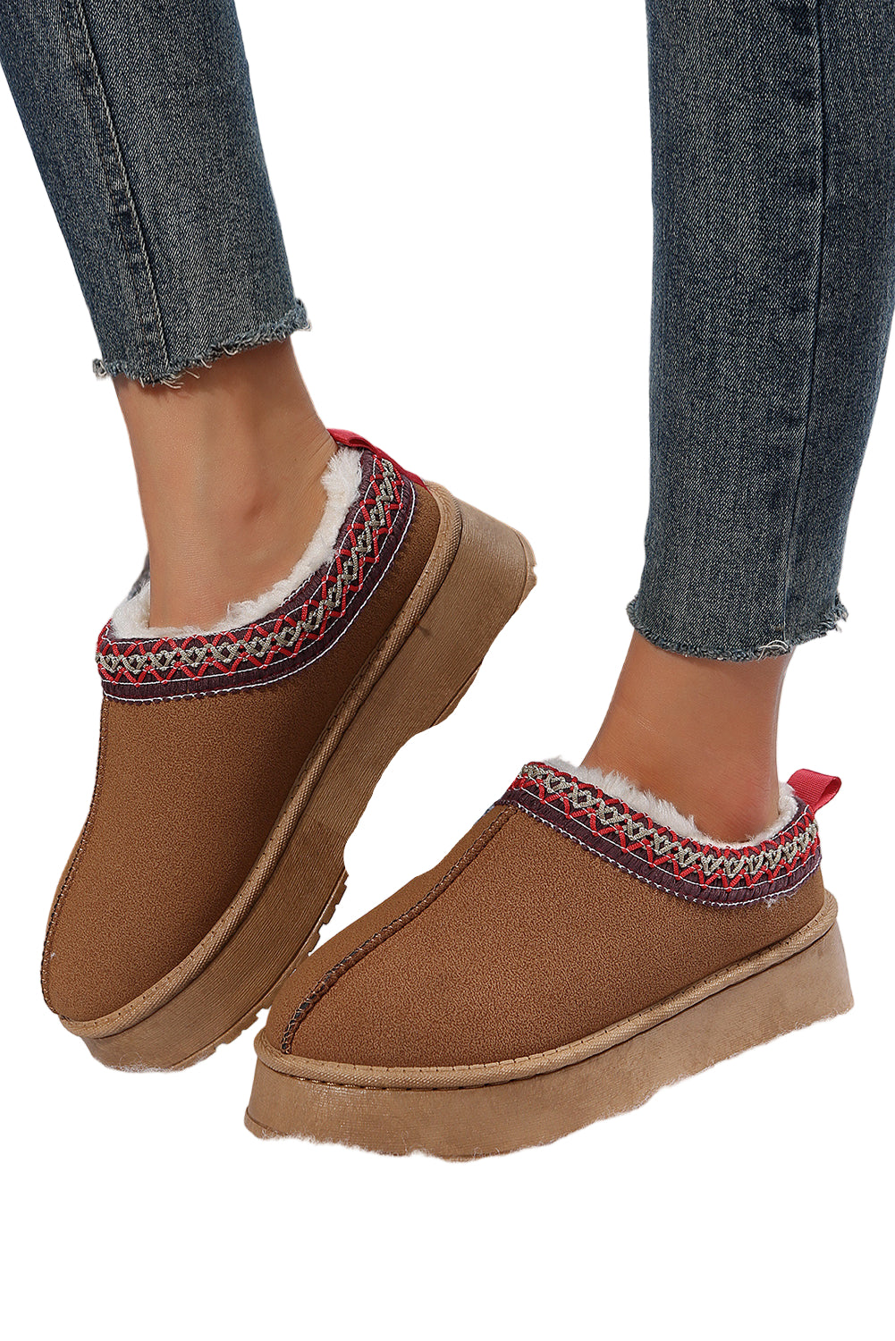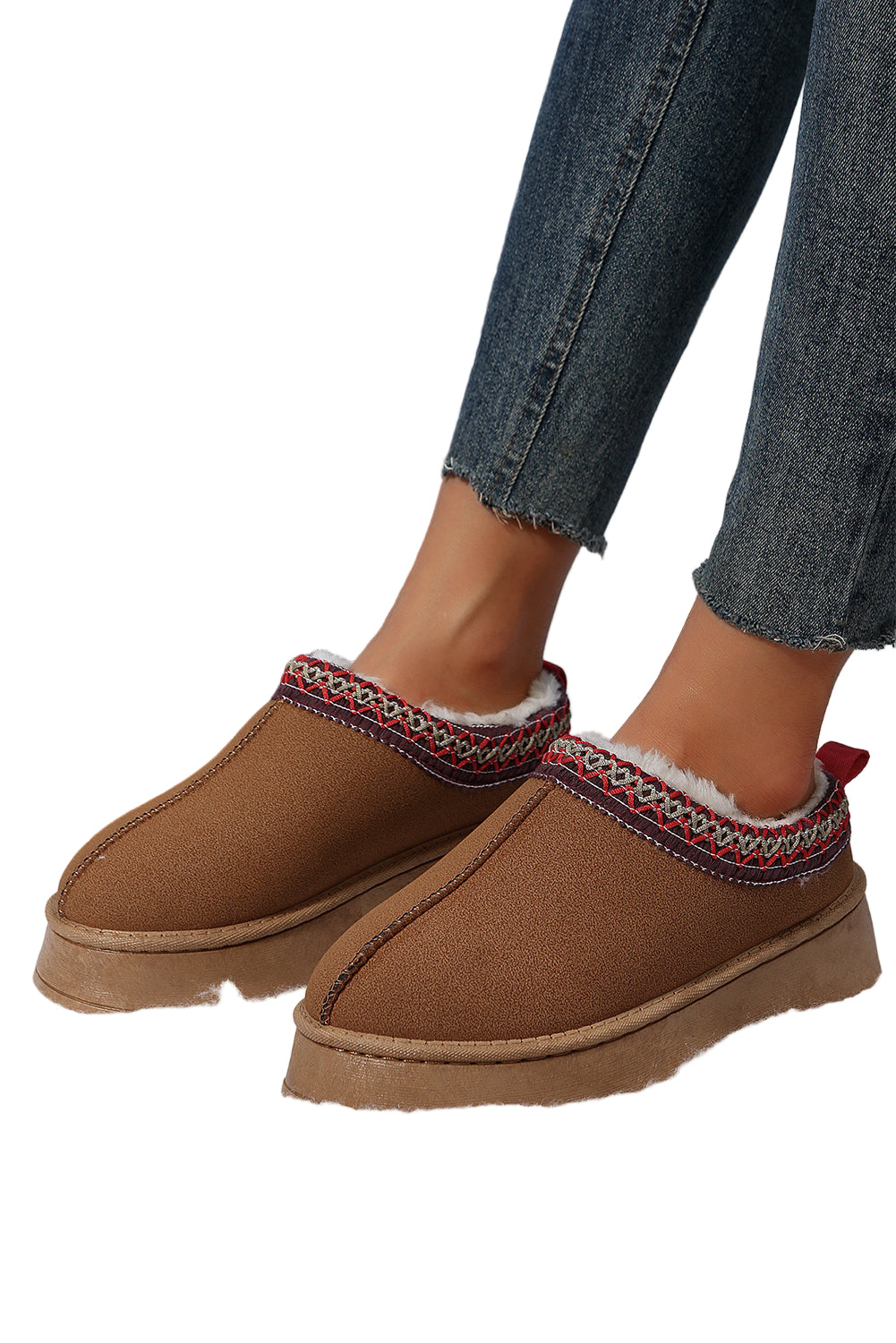 Step into a world of warmth and elegance with our Chestnut Suede Contrast Print Round Toe Plush Lined Flats. Each pair whispers sweet nothings to your feet, enveloping them in a soft embrace that dances with every step.