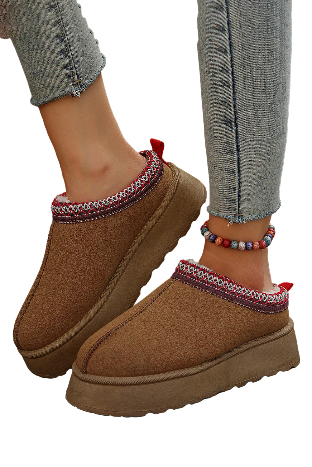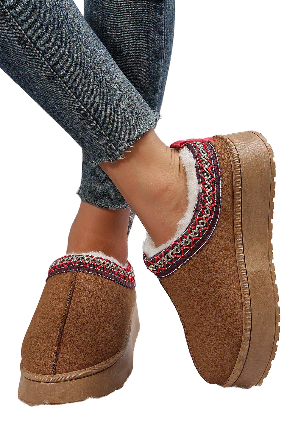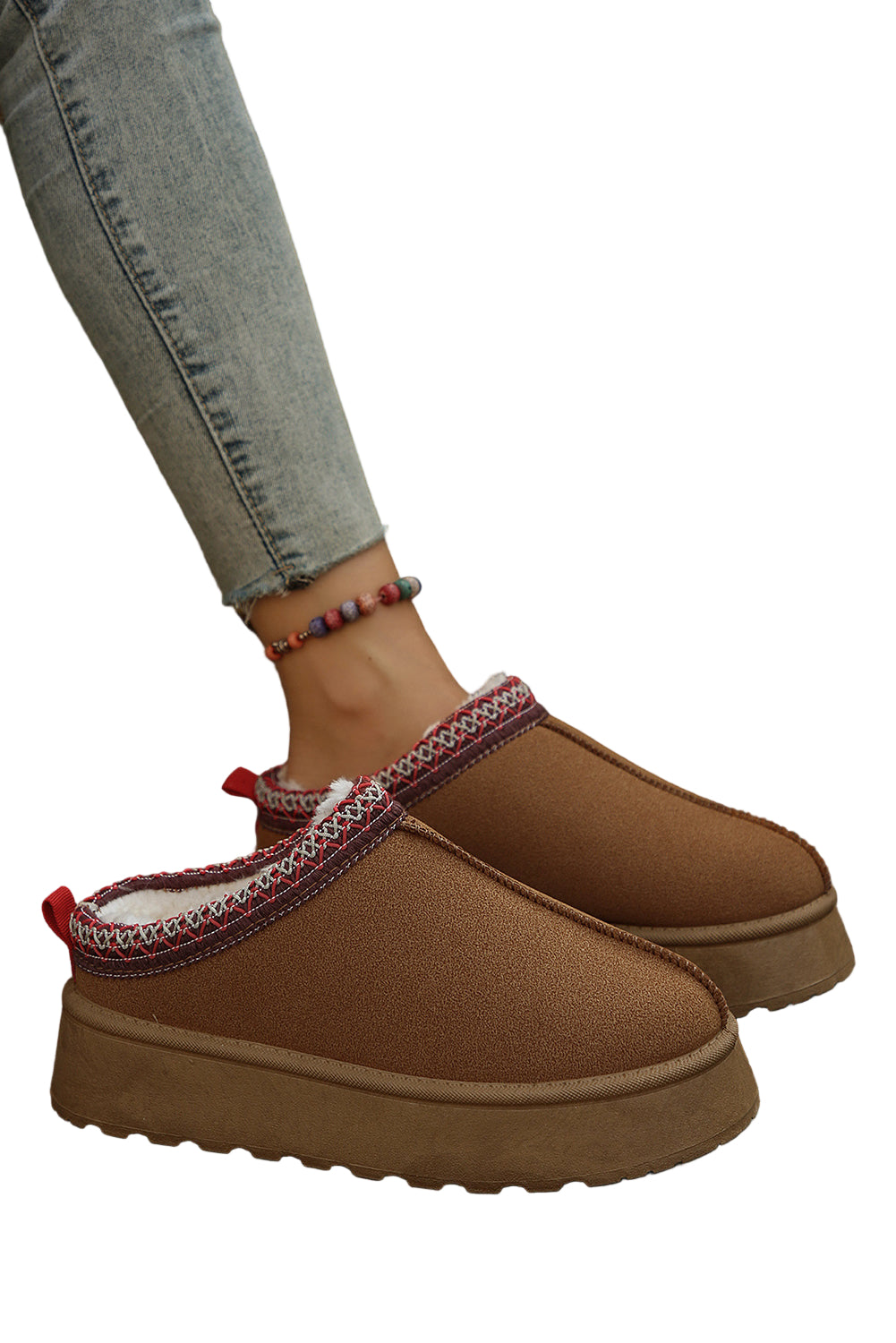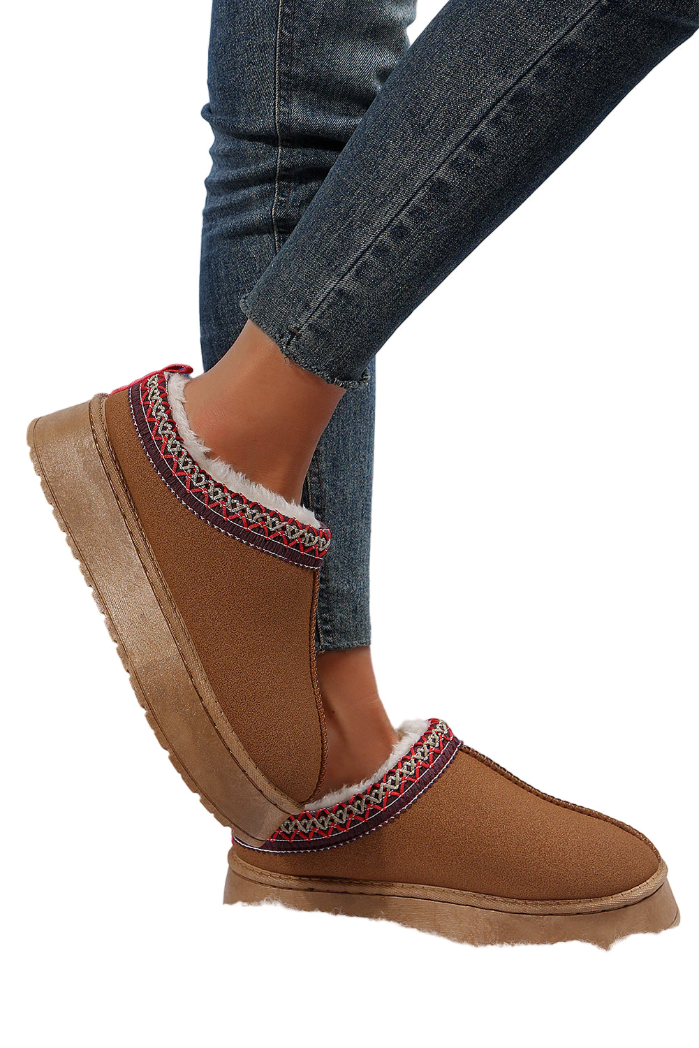 Step into a world of warmth and elegance with our Chestnut Suede Contrast Print Round Toe Plush Lined Flats. Each pair whispers sweet nothings to your feet, enveloping them in a soft embrace that dances with every step.