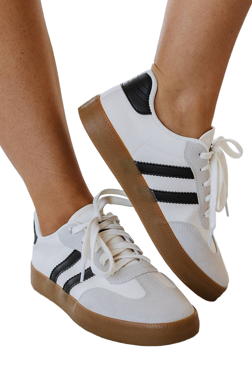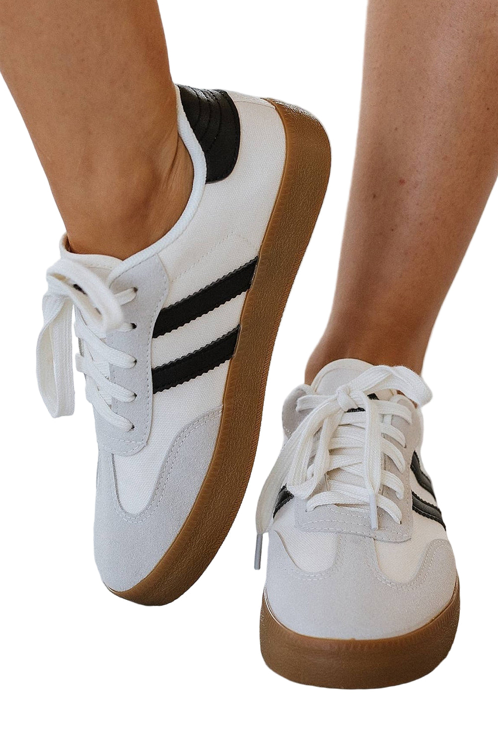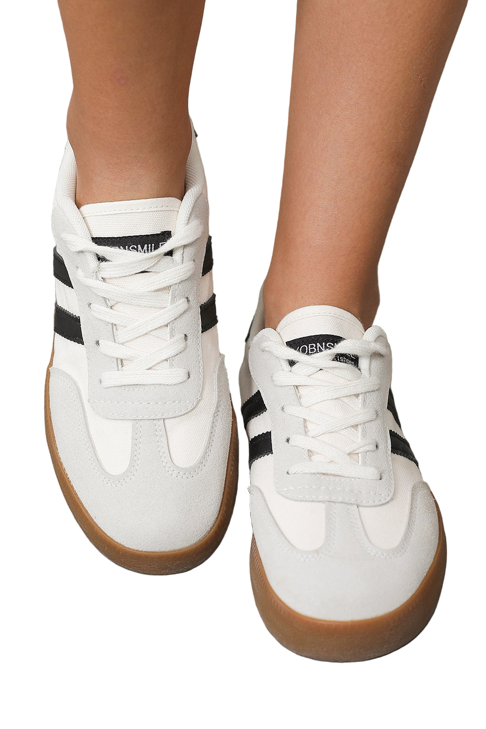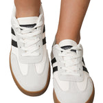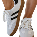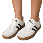Step into a world of romance with our White Striped Lace Up Flat Sneakers. These charming shoes, adorned in a delicate white hue with subtle stripes, whisper elegance and style. Each lace-up detail invites you to create a perfect fit, cradling your feet in comfort as you wander through sunlit streets.