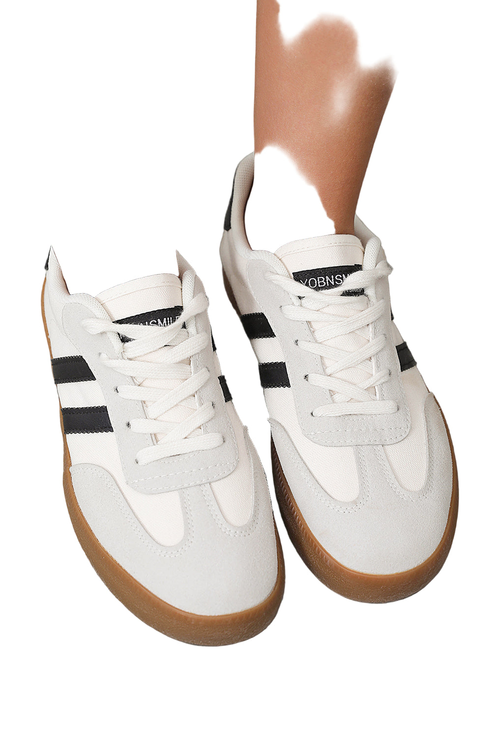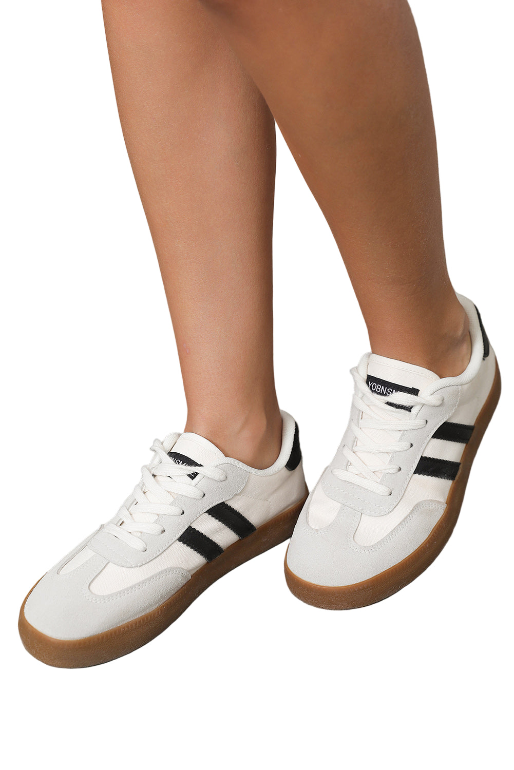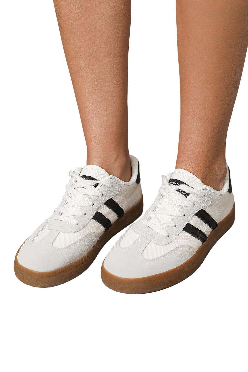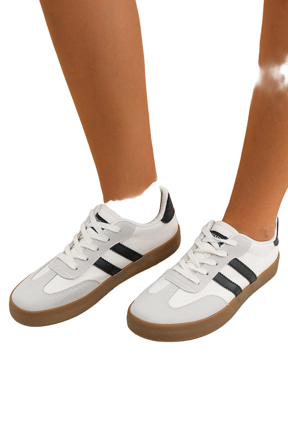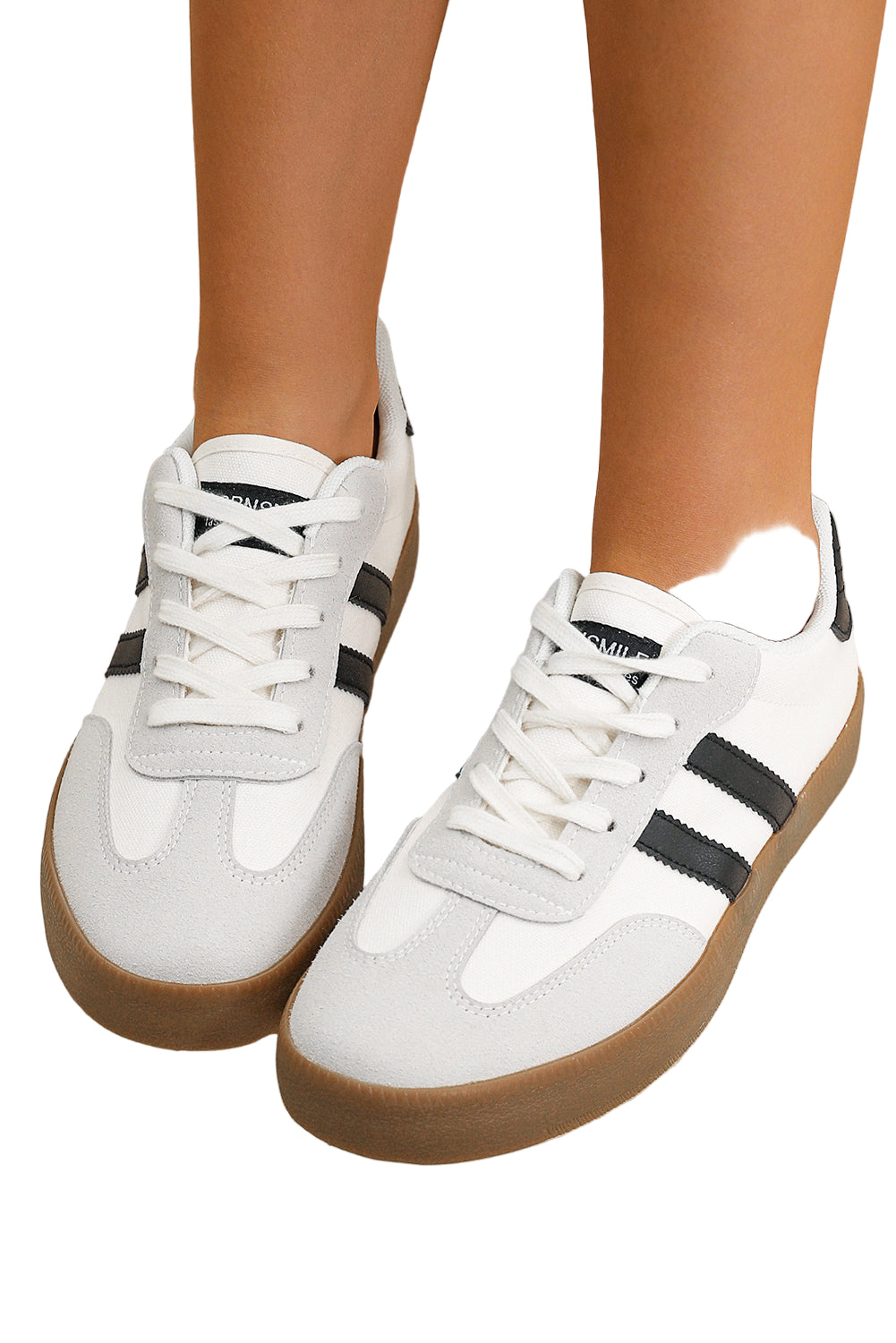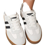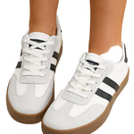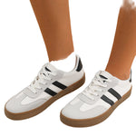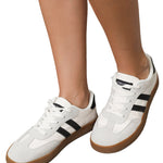 White Striped Lace-up Flat Sneakers