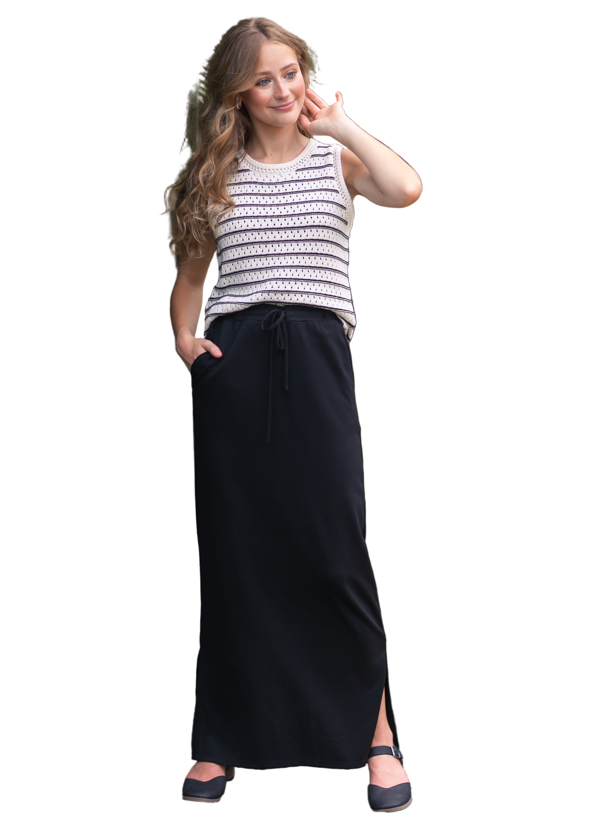 Embrace the allure of effortless elegance with the Jordan Knit Maxi Skirt, a romantic addition to your wardrobe. This enchanting piece flows gracefully, perfect for a sunlit stroll or a cozy evening with loved ones.